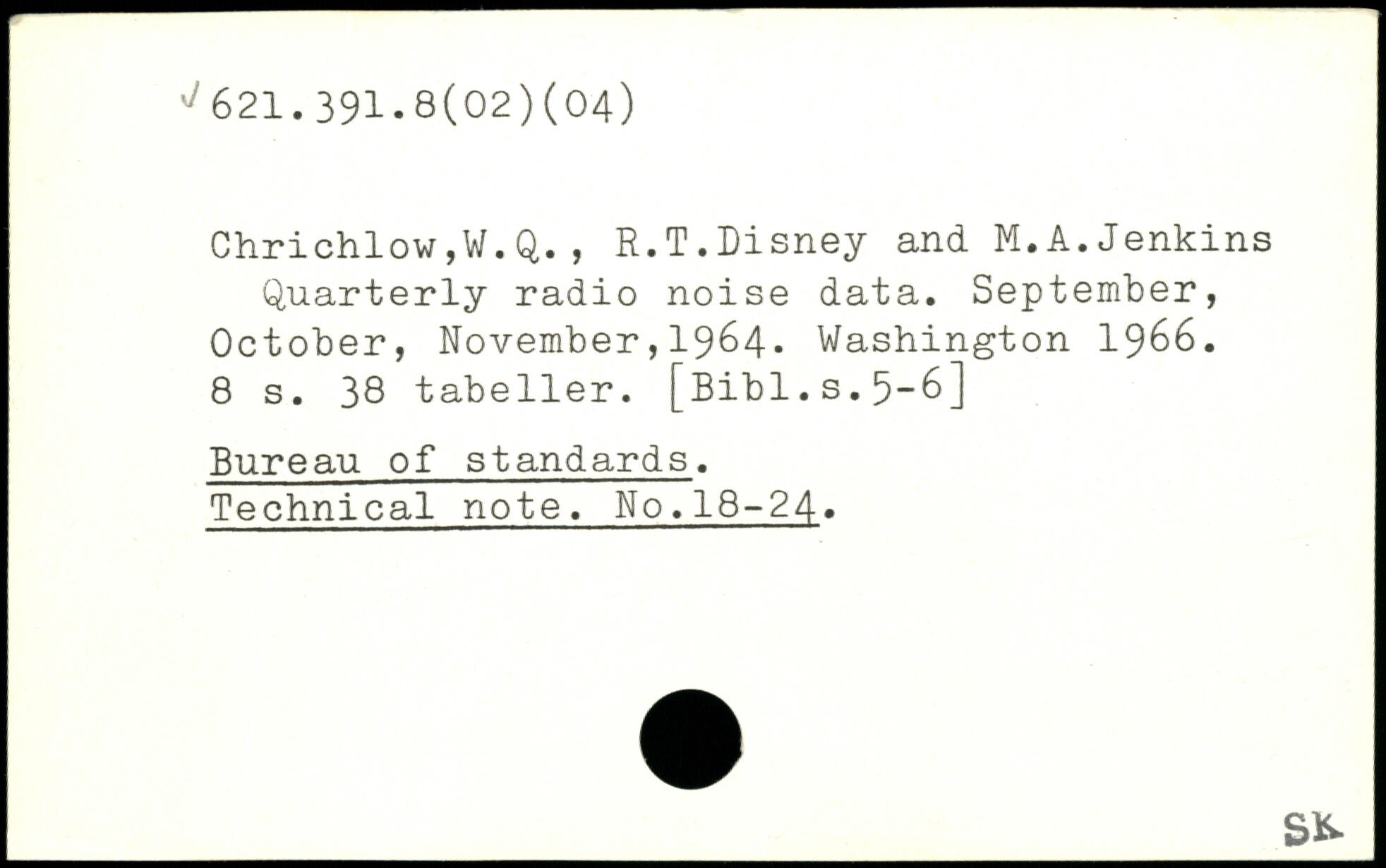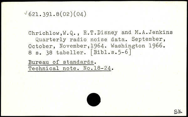 Chrichlow,W. Q., R.T.Disney and M.A.Jenkins Quarterly radio noise data.
