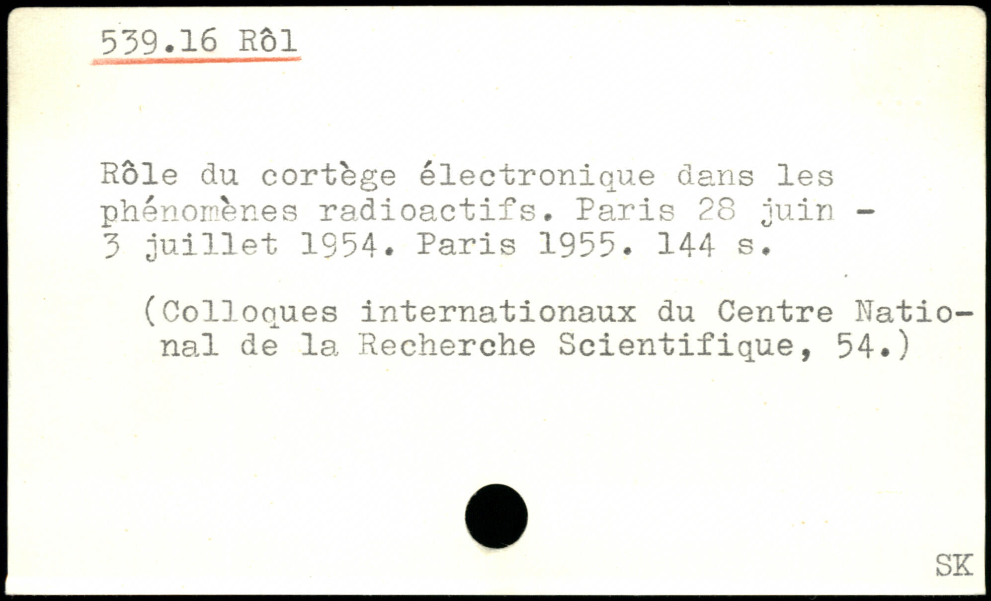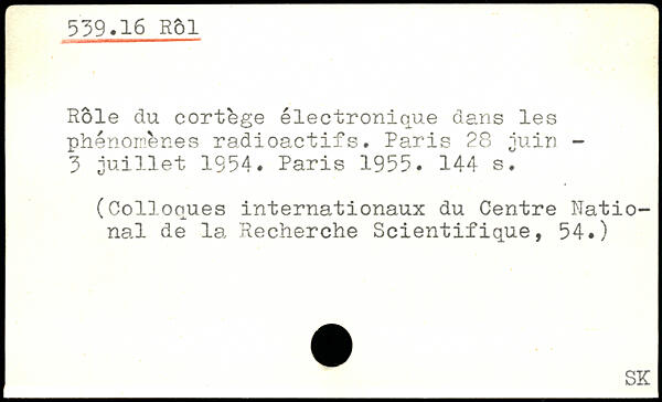 Rôle du cortège électronique dans les phénomènes radioactifs. Paris 28 juin -3 juillet 1954.