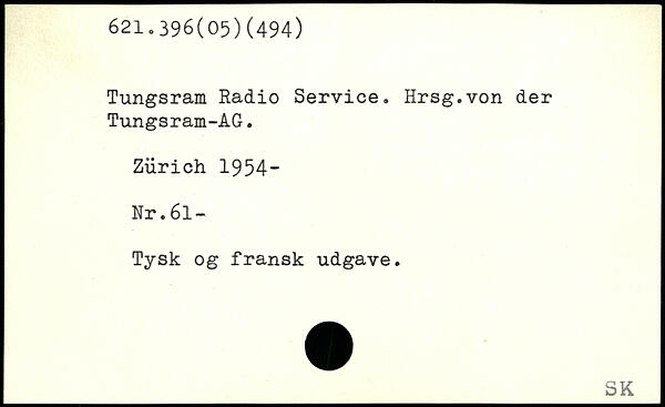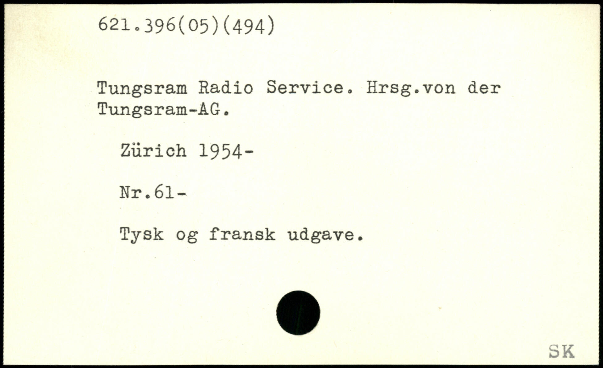 Tungsram Radio Service. Hrsg.von der Tungsram-AG. Zürich 1954- Rr.61- Tysk og fransk udgave.