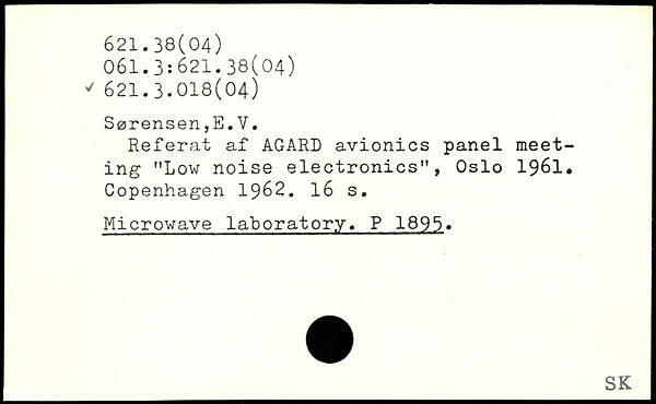 Referat af AGARD avionics panel meeting "Low noise electronics", Oslo 1961.
