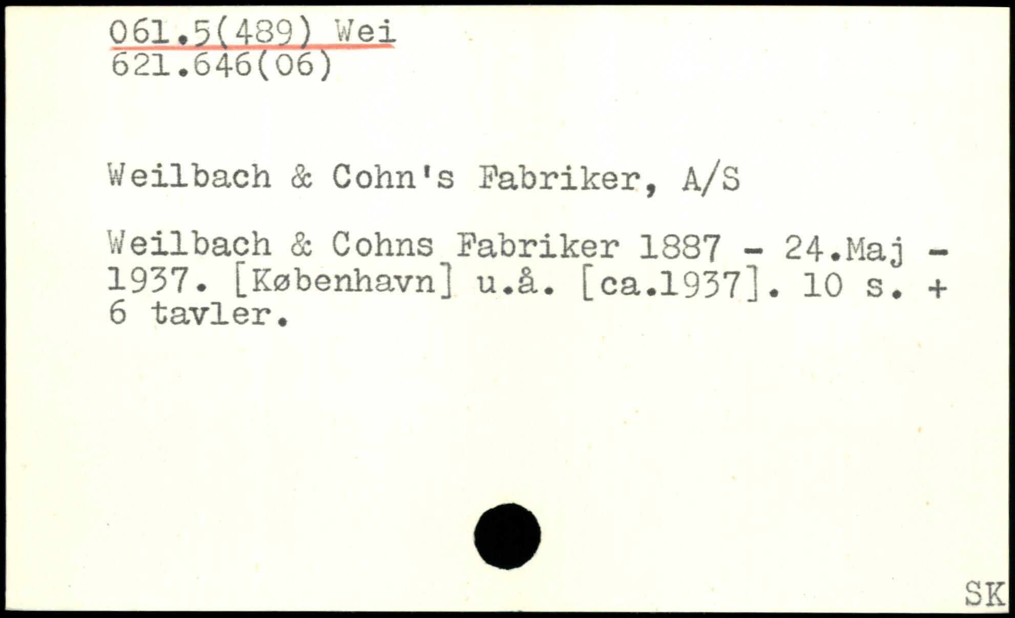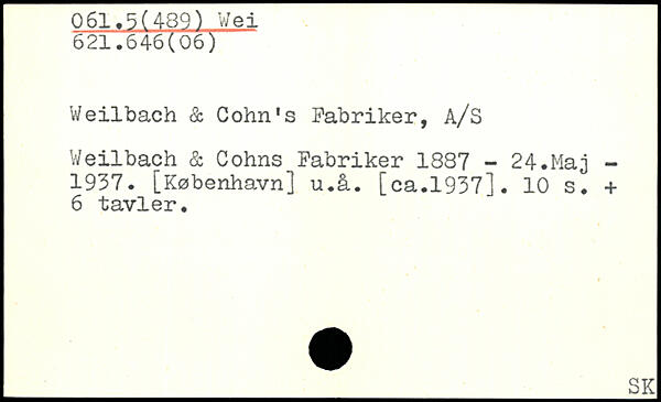 V/eilbach & Cohn's Fabriker, A/S Weilbach & Cohns Fabriker 1387 - 24.Maj -1937. [København] u.å.