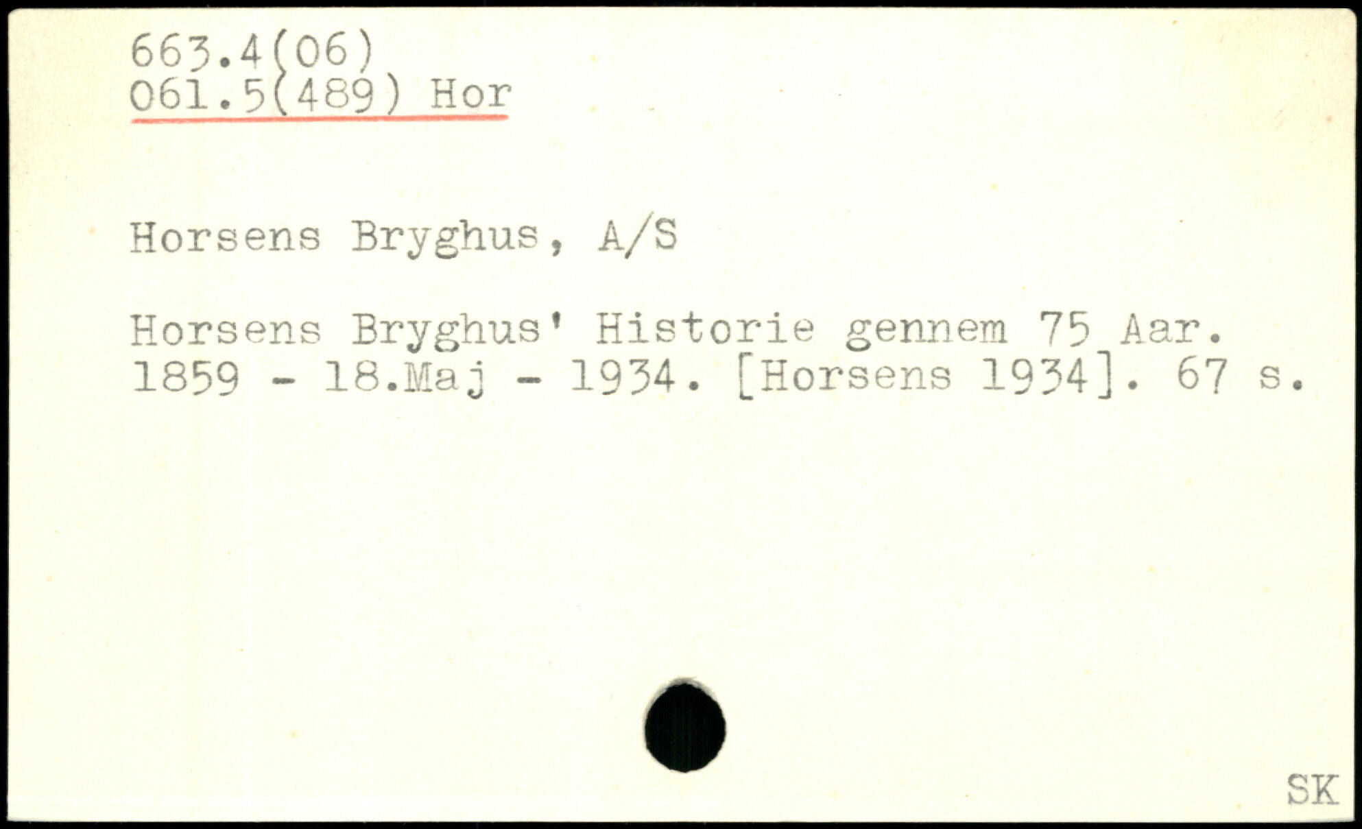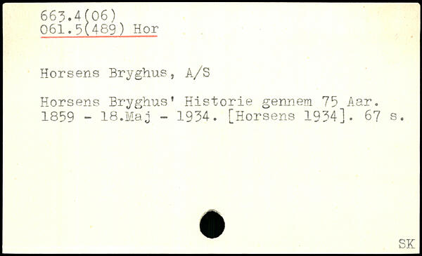 Horsens Bryghus, A/S Horsens Bryghus’ Historie gennem 75 Aar. 1859 - 18.Maj - 1954.
