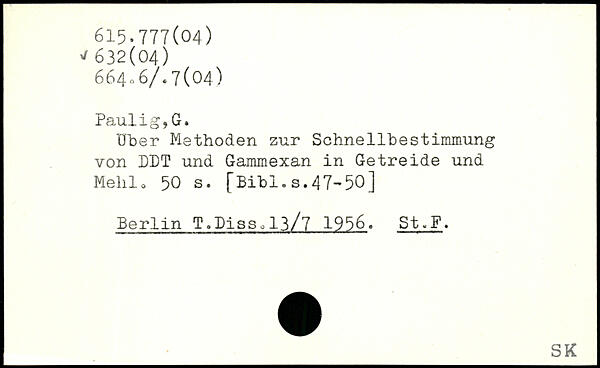 Uber Methoden zur Schnellbestimmung von DDT und Gammexan in Getreide und Melilo