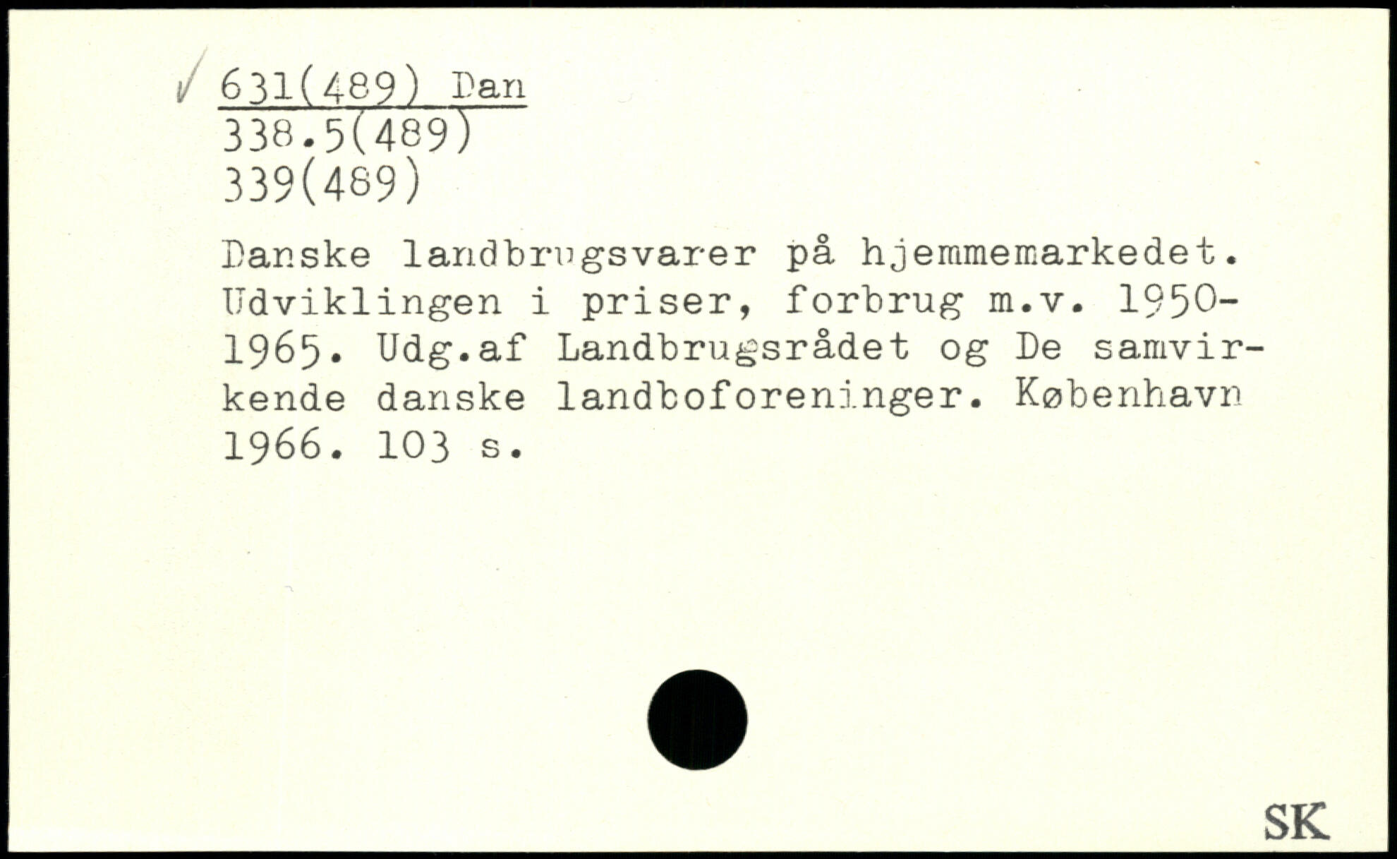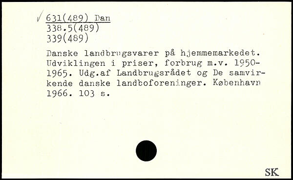 Dar.ske landbrugsvarer på hjemmemarkedet. Udviklingen i priser, forbrug m.v. 1950- 1965. Udg.af Landbrugsrådet og De samvirkende danske landboforeninger.