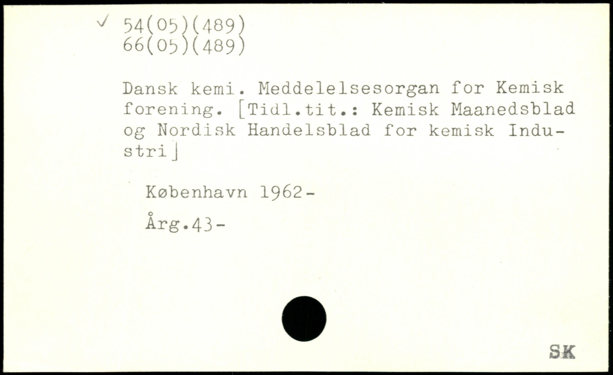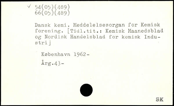 Dansk kemi. Meddelelsesorgan for Kemisk forening. [Tidl.tit.: Kemisk Maanedsblad og Nordisk Handelsblad for kemisk Industri J
