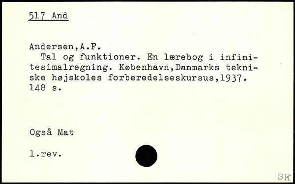 Tal og funktioner. En lærebog i infini-tesimalregning.