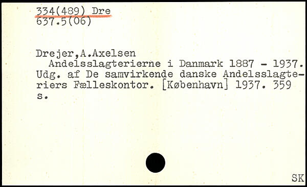 trnw>ti— Drejer,A.Axelsen Andelsslagterierne i Danmark 1887 - 1937. Udg. af De samvirkende danske Andelsslagteriers Dælleskontor.