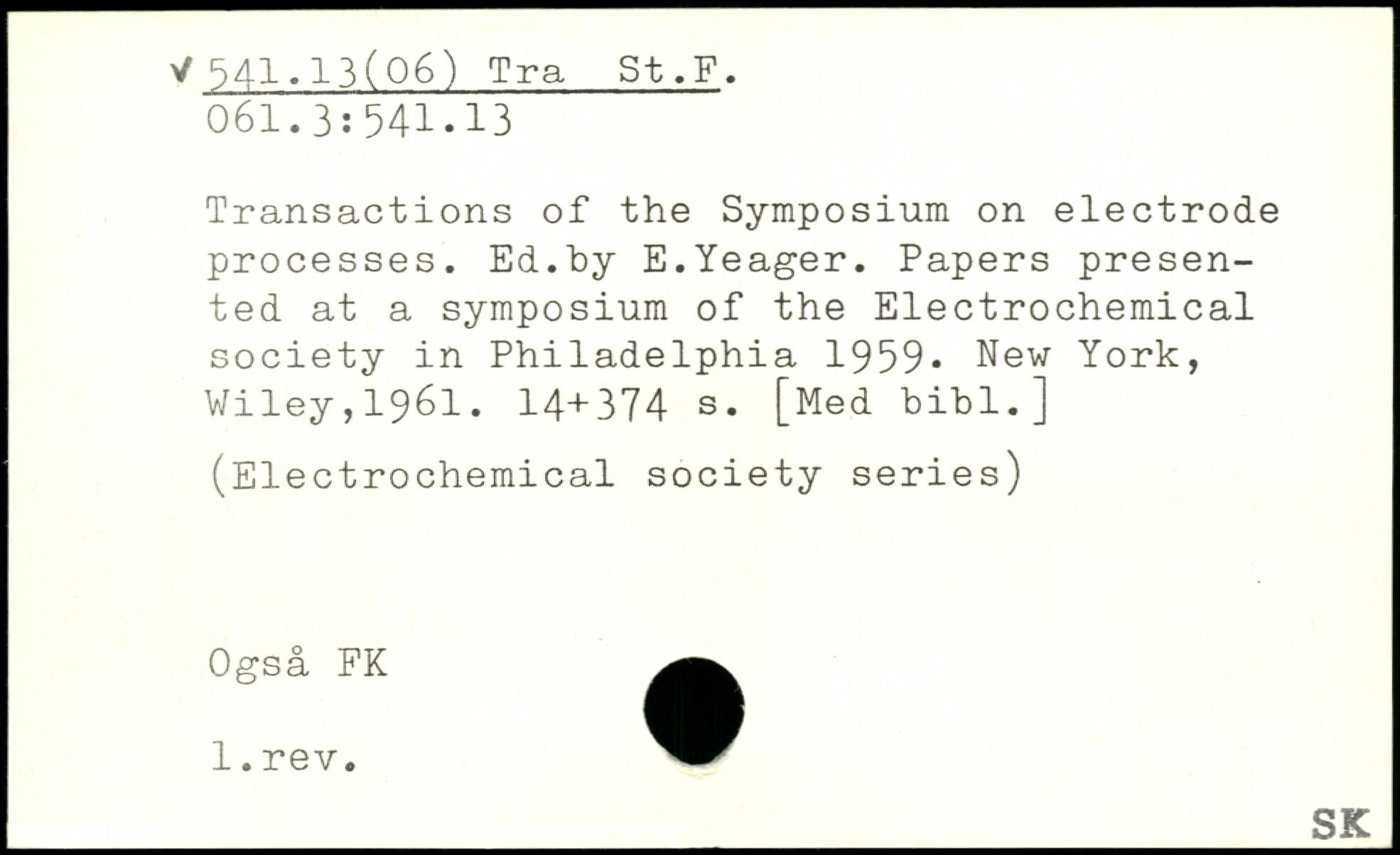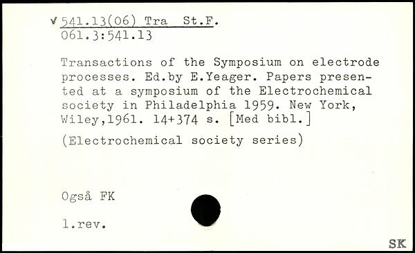 Transactions of the Symposium on electrode processes. Ed.hy E.Yeager. Papers presented at a symposium of the Electrochemical society in Philadelphia 1959