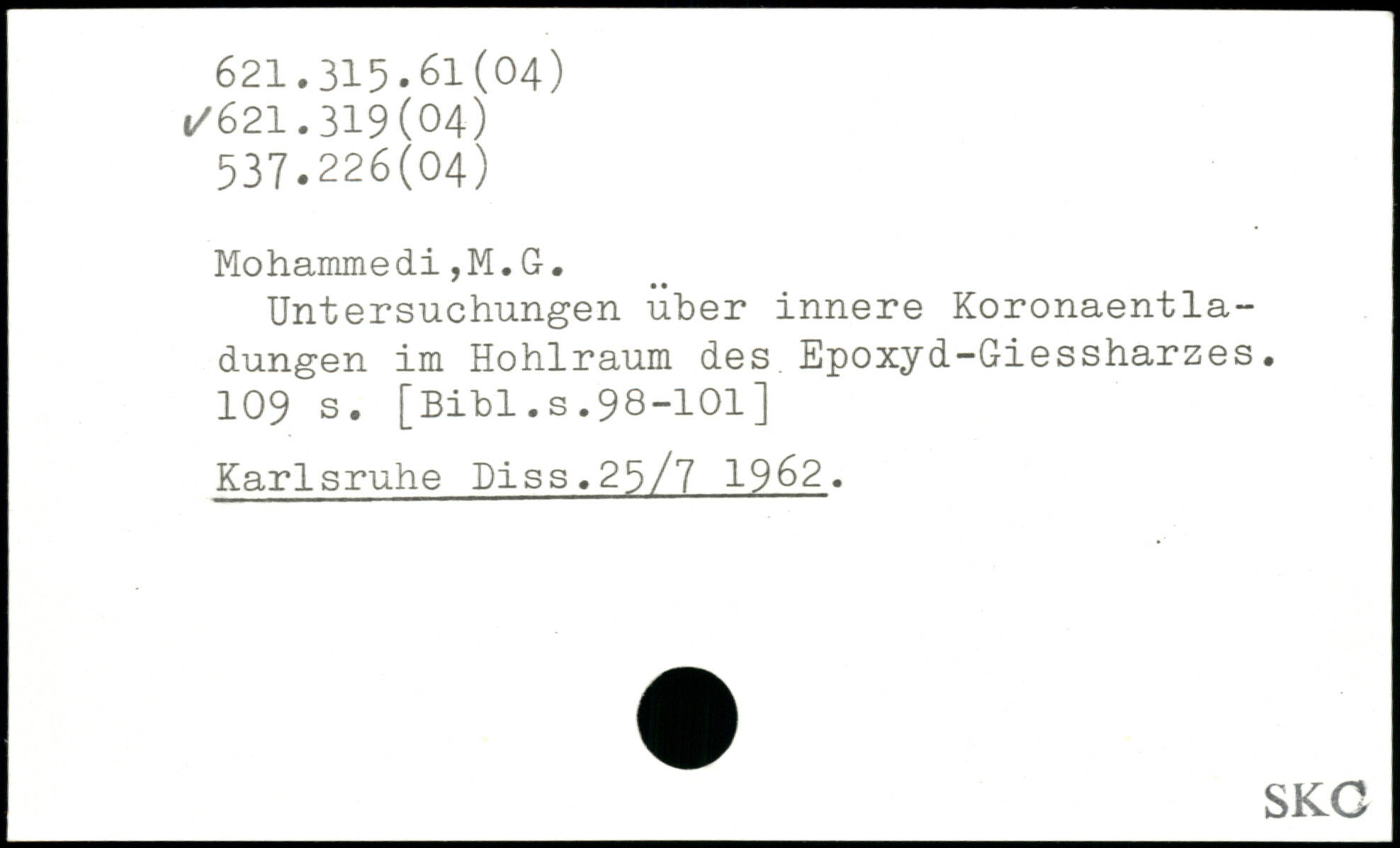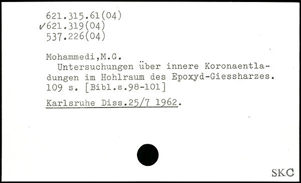 Untersuchungen über innere Koronaentladungen im Hohlraum des.Epoxyd-Giessharzes.