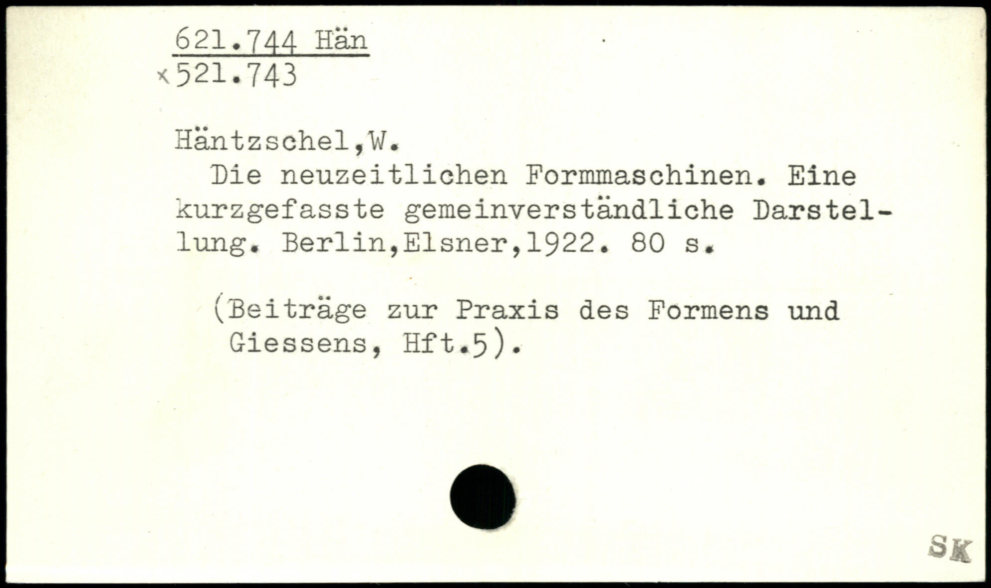 Die neuzeitlichen Formmaschinen. Eine kurzgefasste gemeinverständliche Darstellung.