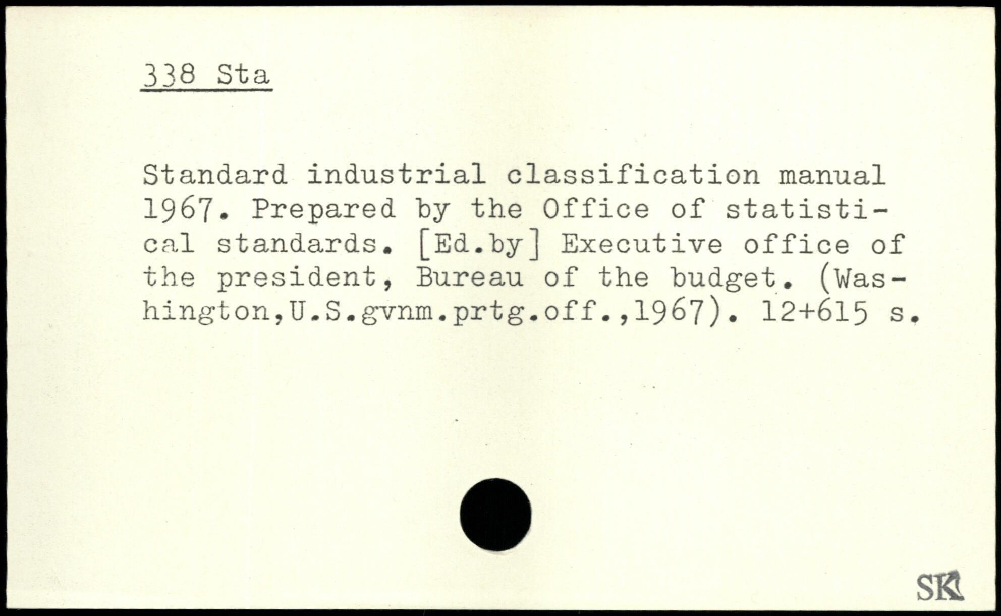 Standard industrial classification manual 1967. Prepared by the Office of statistical standards. [Ed.by] Executive office of the president, Bureau of the budget. (Was-hington,U.S.gvnm.prtg.off.,1967).
