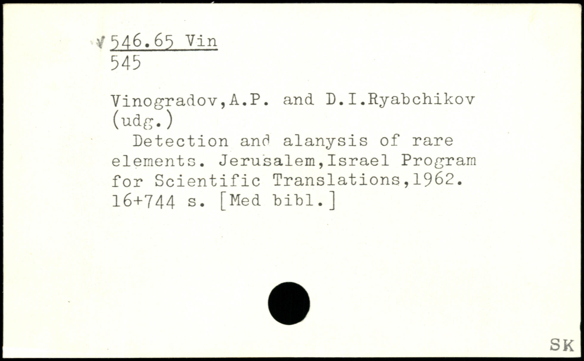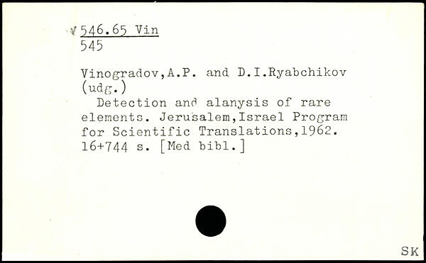 Detection and alanysis of rare elements. Jerusalem,Israel Program for Scientific Translations,1962.