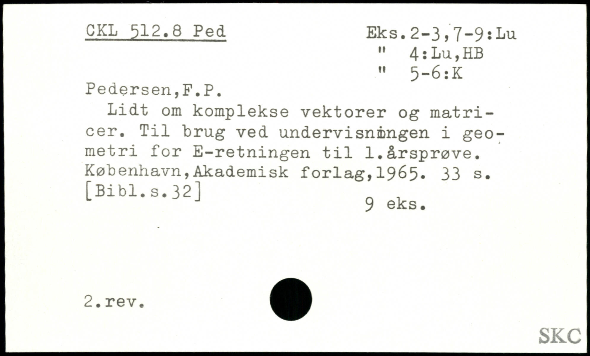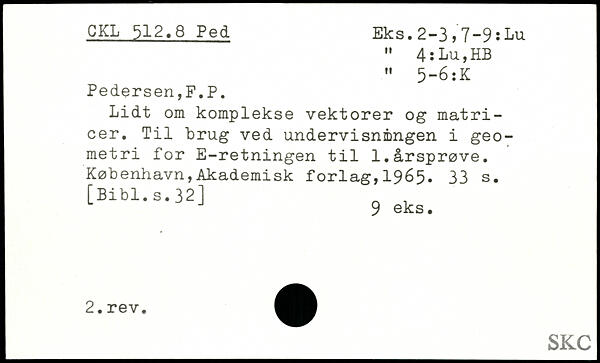 Lidt om komplekse vektorer og matricer. Til brug ved undervisningen i geometri for E-retningen til 1.årsprøve.