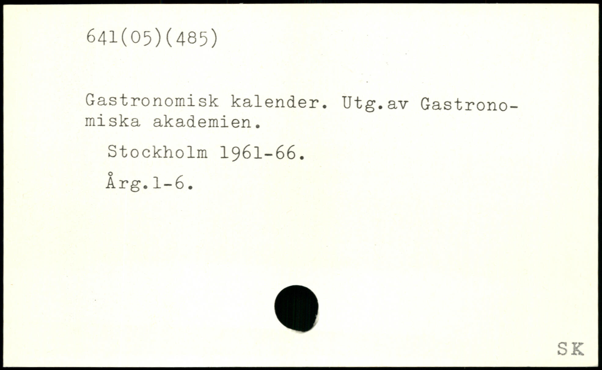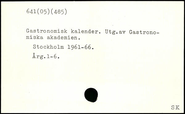 Gastronomisk kalender. Utg.av Gastrono-miska akademien.
