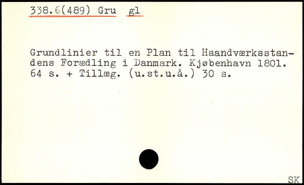 Grundlinier til en Plan til Haandværksstandens Forædling i Danmark. Kjøbenhavn 1801.
