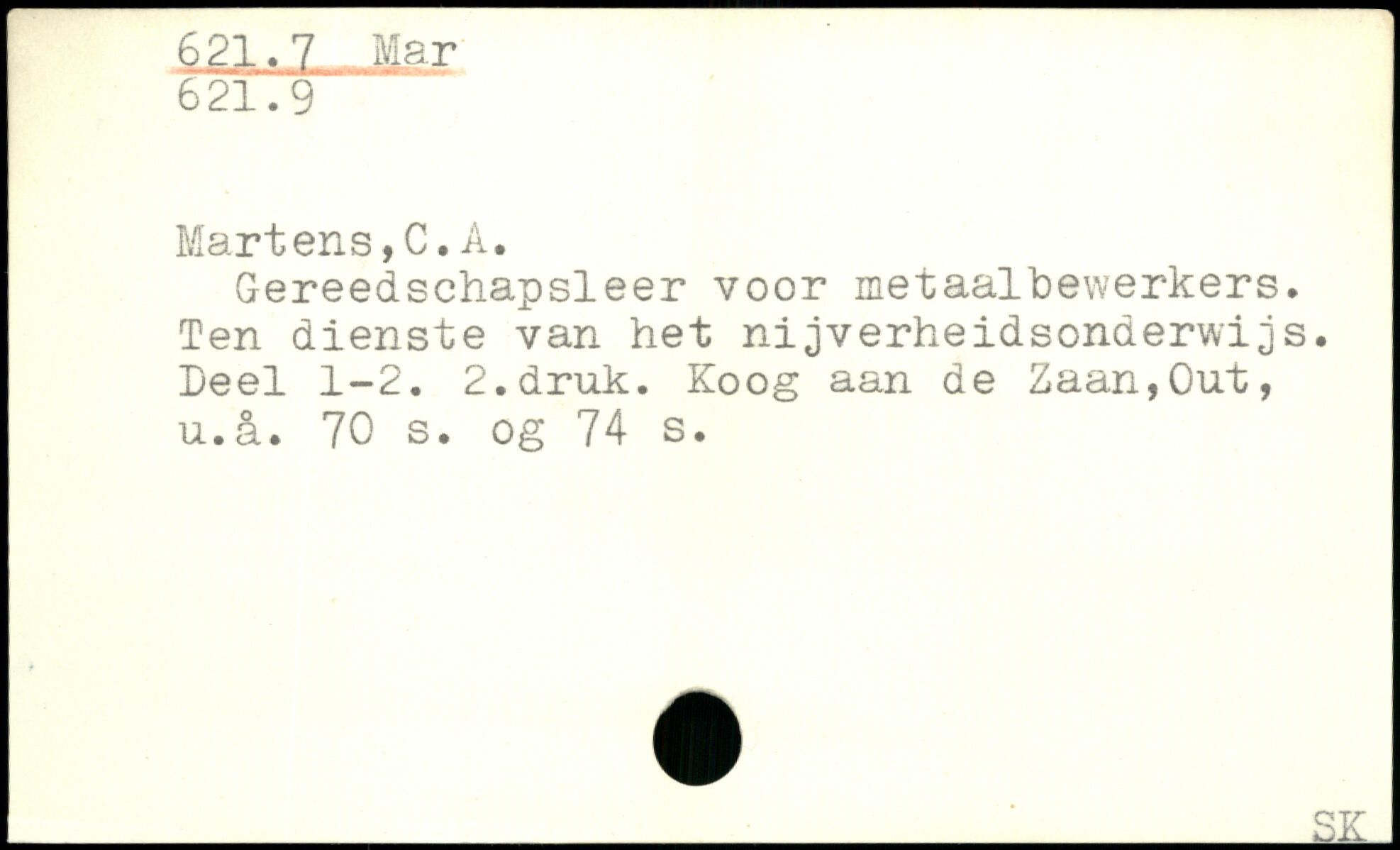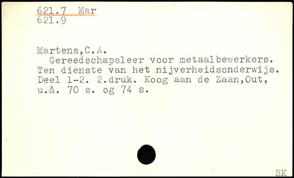Gereedschapsleer voor metaalbewerkers. Ten dienste van het nijverheidsonderwijs. Deel 1-2. 2.druk. Koog aan de Zaan,Out, u.å.