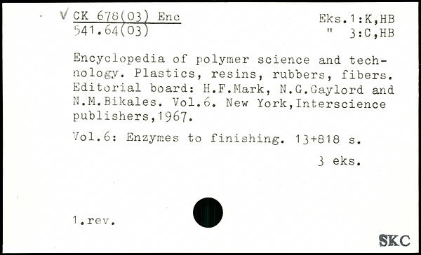 Encyclopedia of polymer science and technology. Plastics, resins, rubbers, fibers. Editorial board: H.F.Mark, N.G.Gaylord and N.M.Bikales.