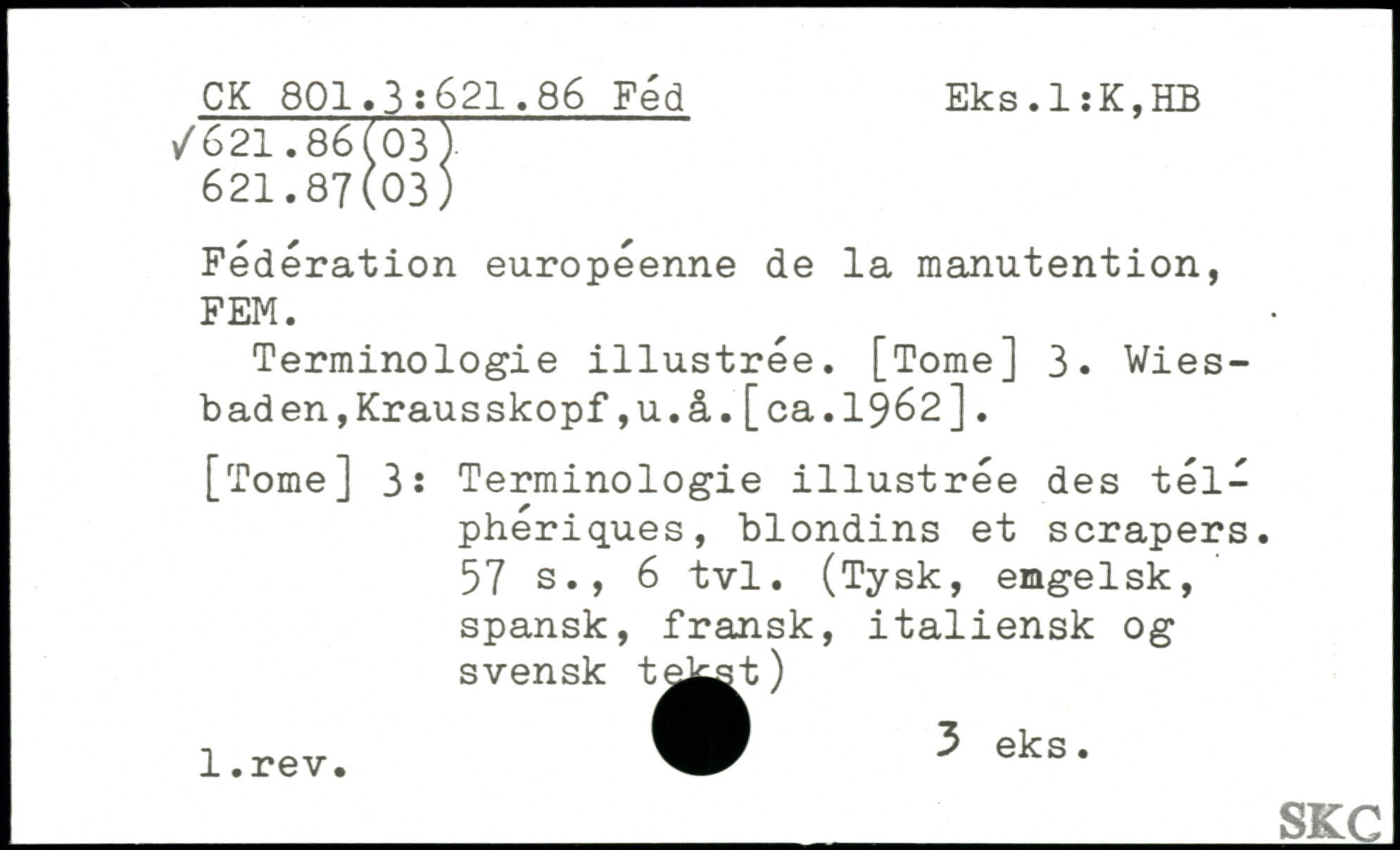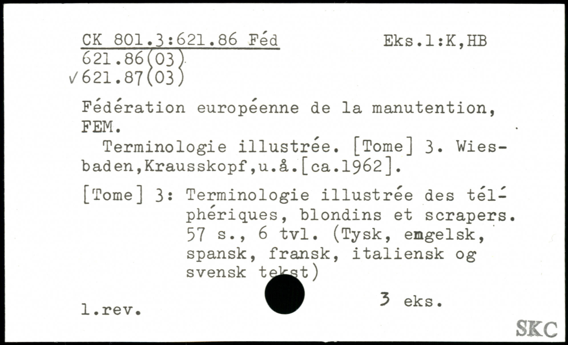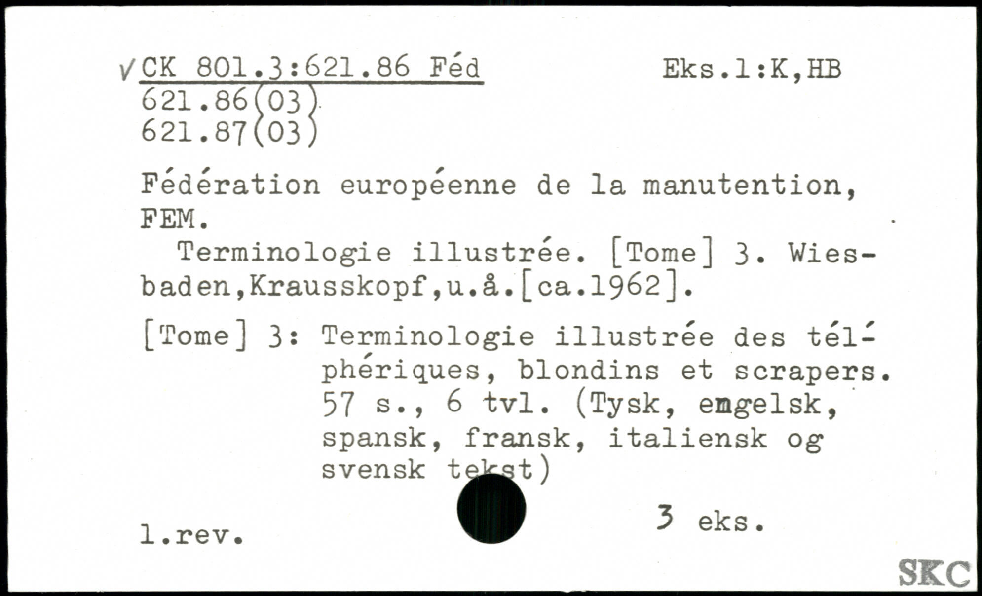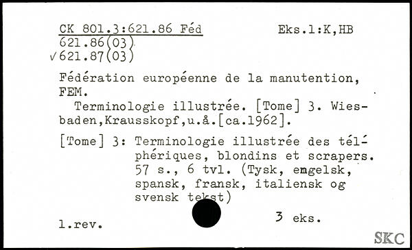 Fédération européenne de la manutention, FEM. Terminologie illustrée. [Tome] 3. Wiesbaden ,Krausskopf,u.â.[ca.1962].