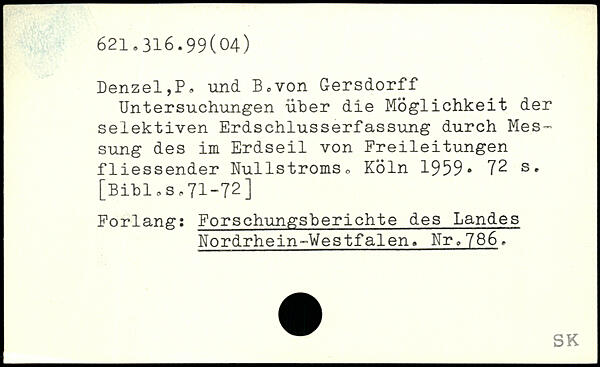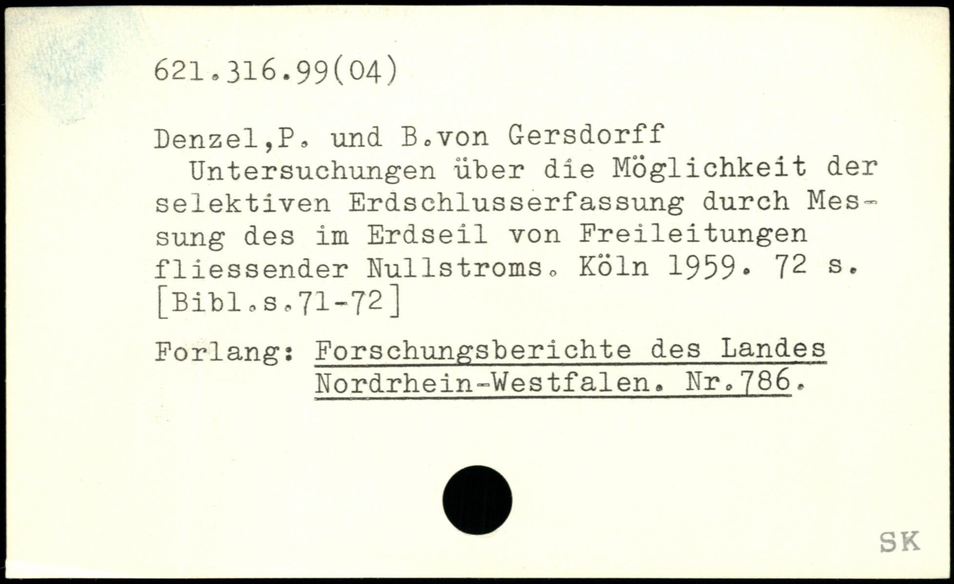 Denzel,Pa und B.von Gersdorff Untersuchungen über die Möglichkeit der selektiven Erdschlusserfassung durch Messung des im Erdseil von Freileitungen fliessender NullstromSo