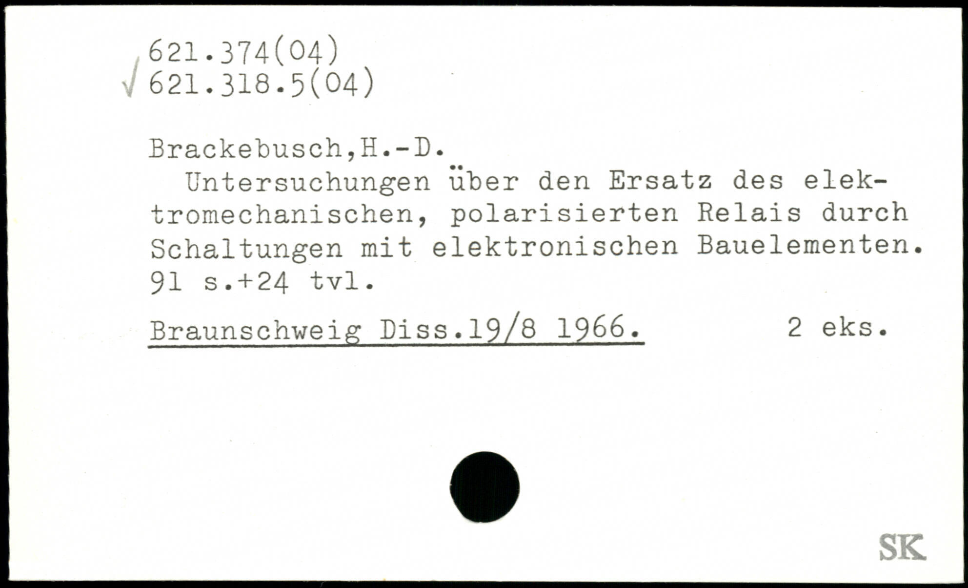 Untersuchungen über den Ersatz des elektromechanischen, polarisierten Relais durch Schaltungen mit elektronischen Bauelementen.