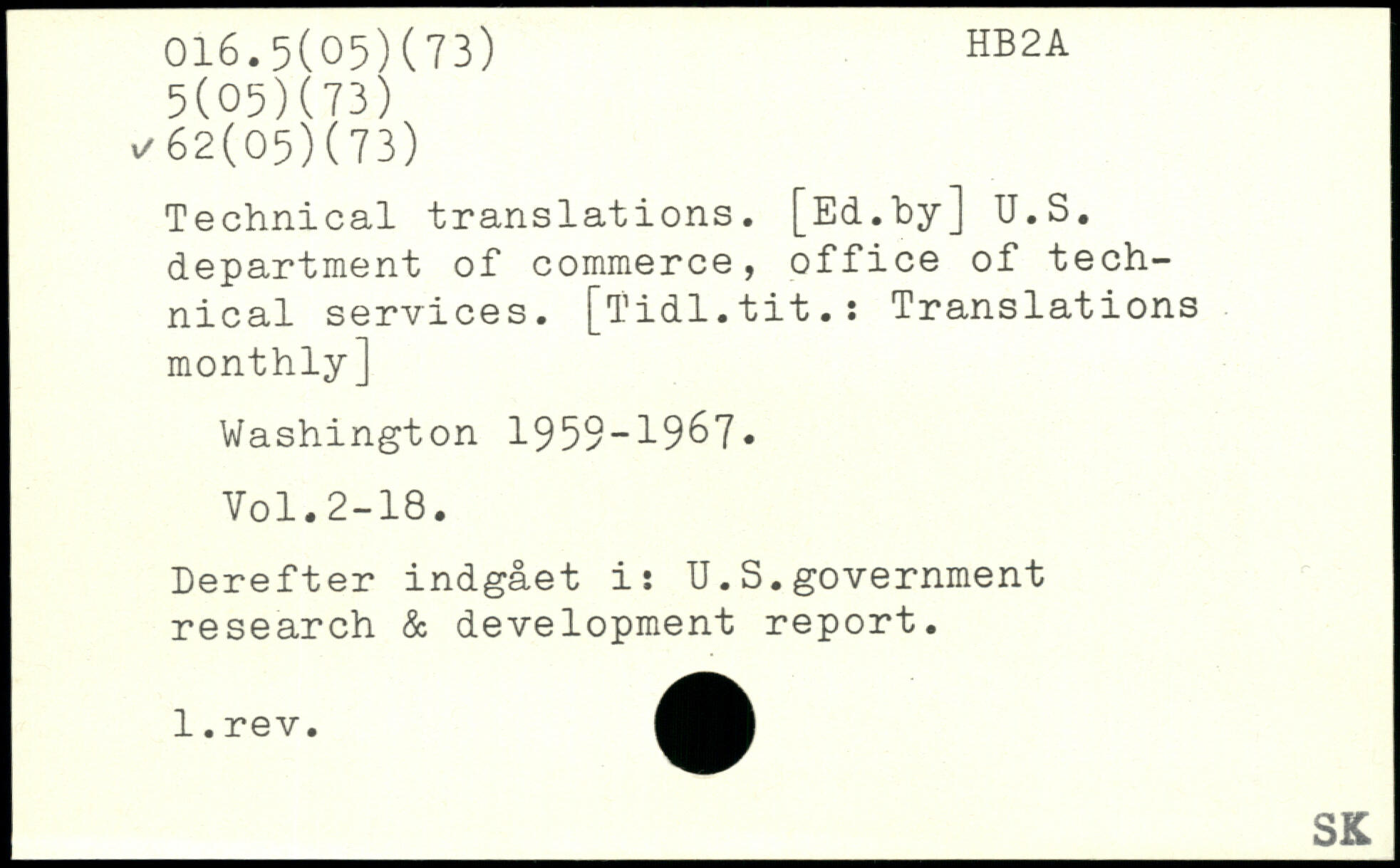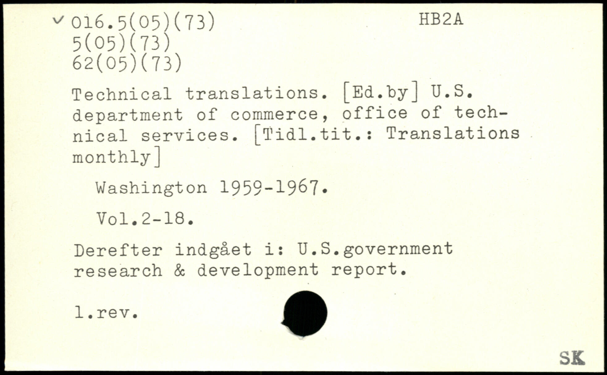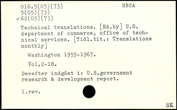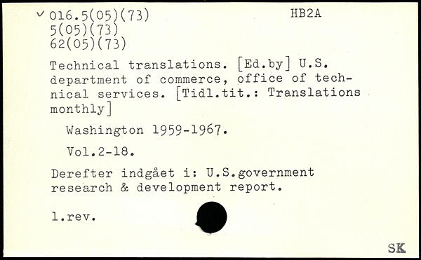 Technical translations. [Ed.by] U.S. department of commerce, office of technical services. [Tidl.tit.: Translations monthly]