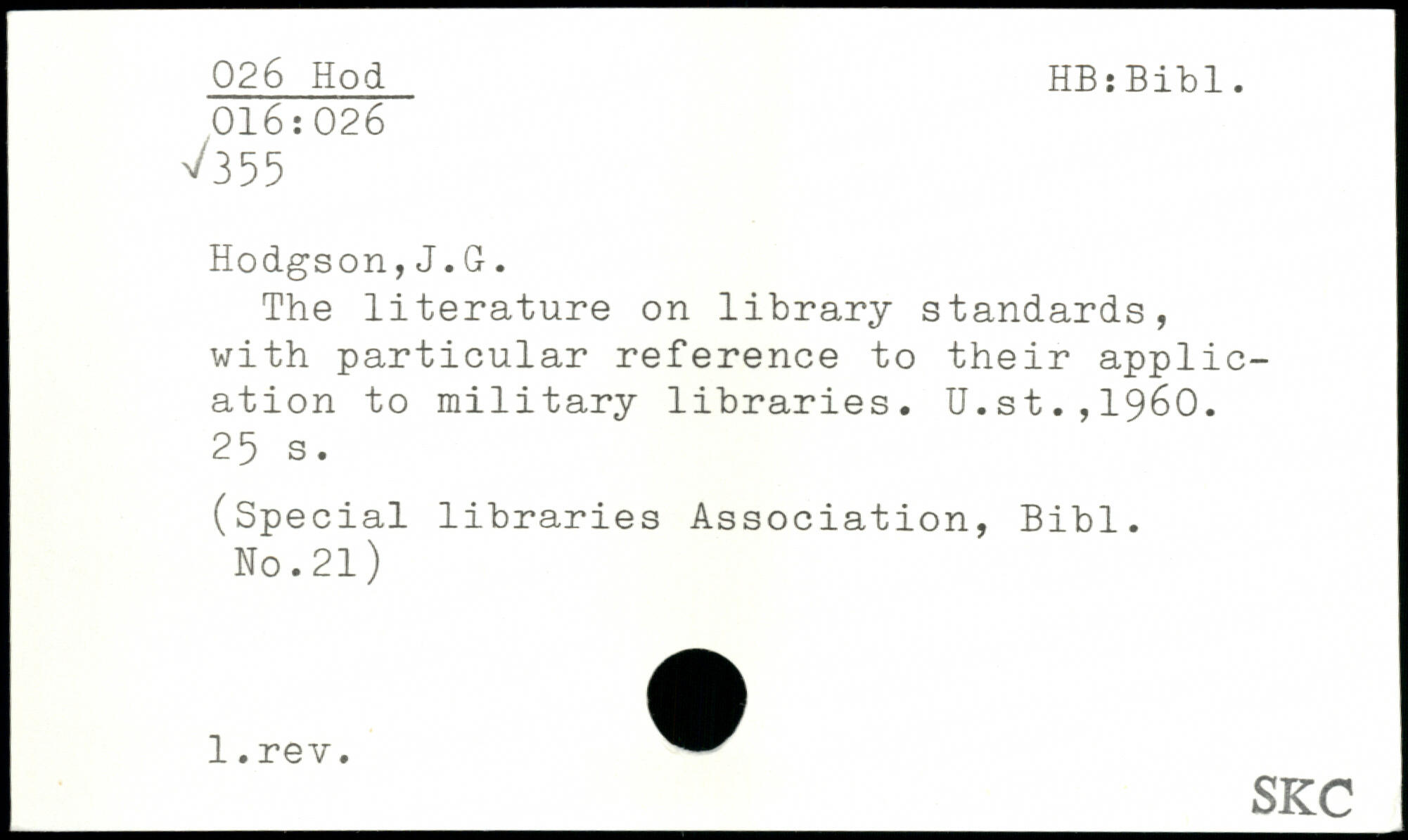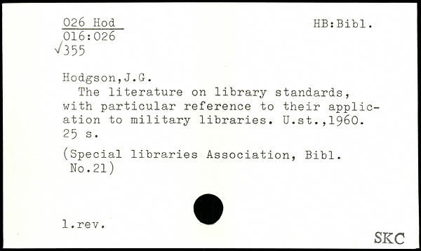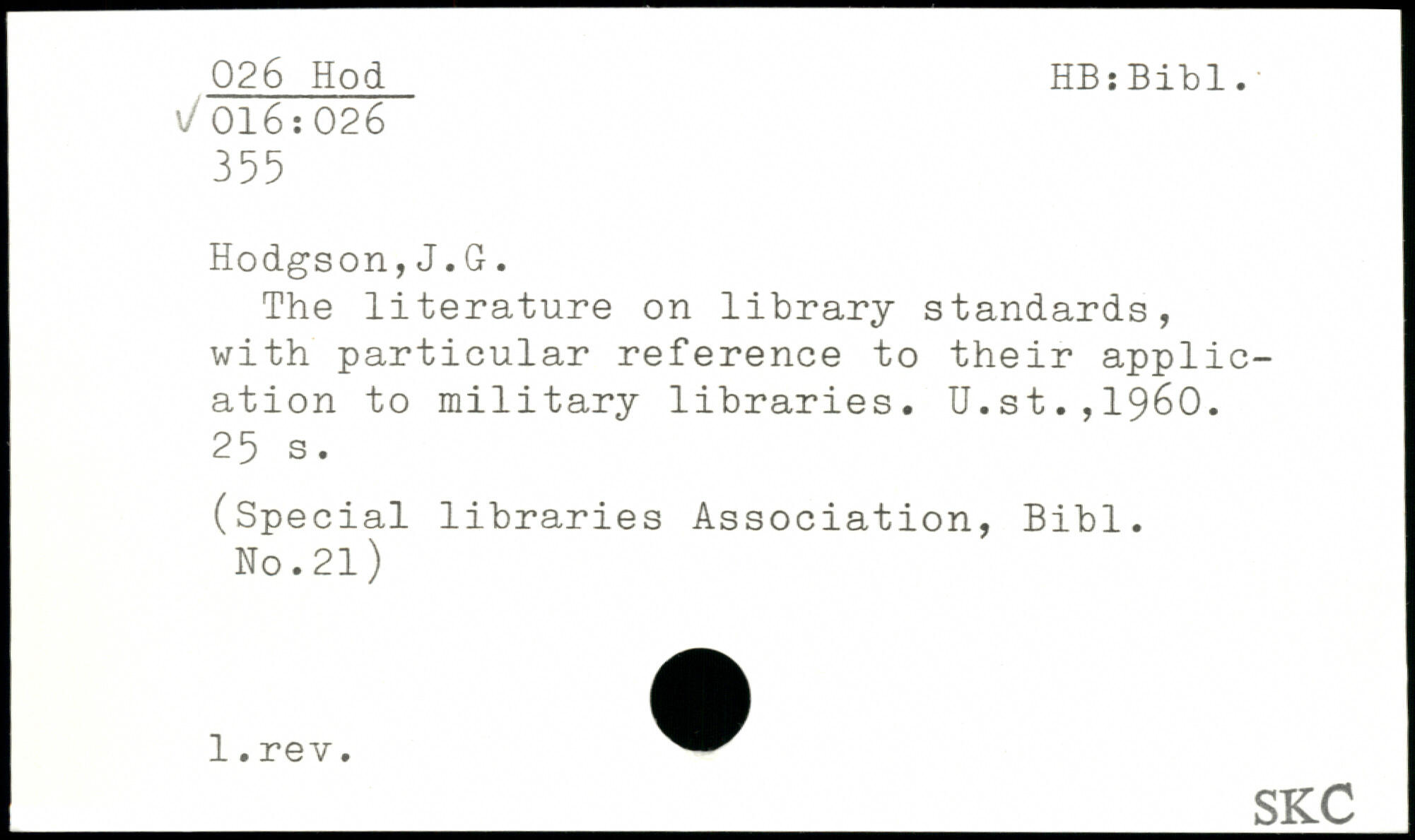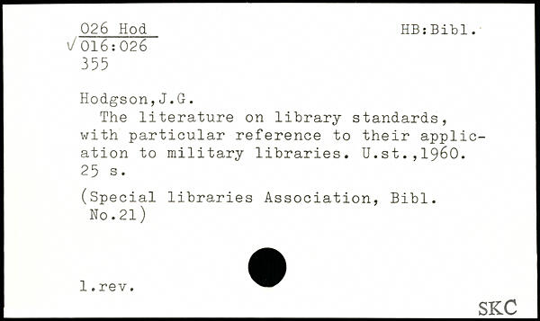 The literature on library standards, with particular reference to their application to military libraries. U.st.,1960.