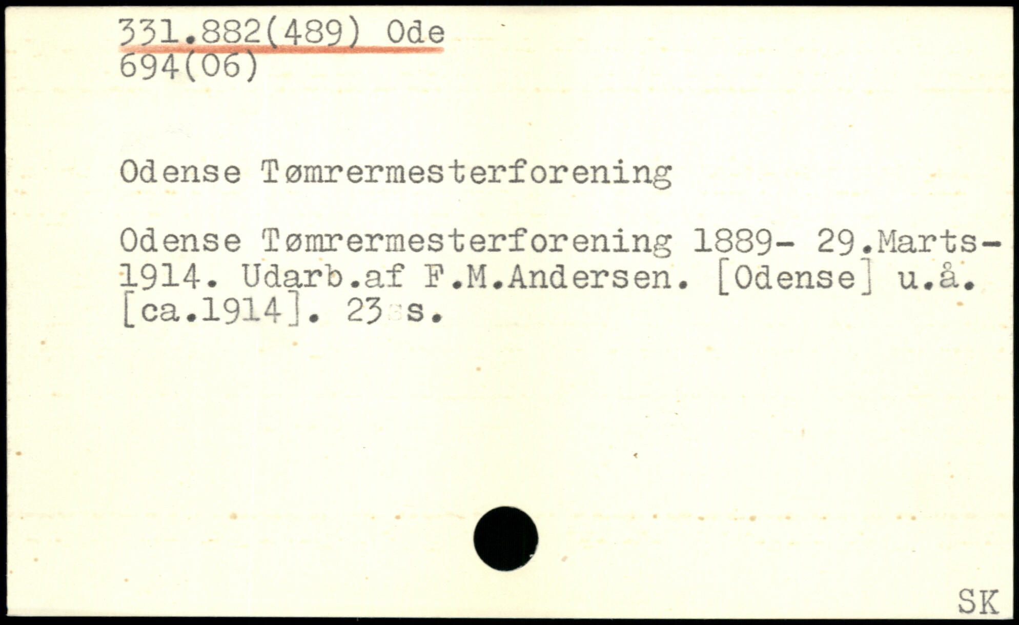 Odense Tømrermesterforening Odense Tømrermesterforening 1889- 29.Marts-1914. Udarb.af F.M.Andersen.