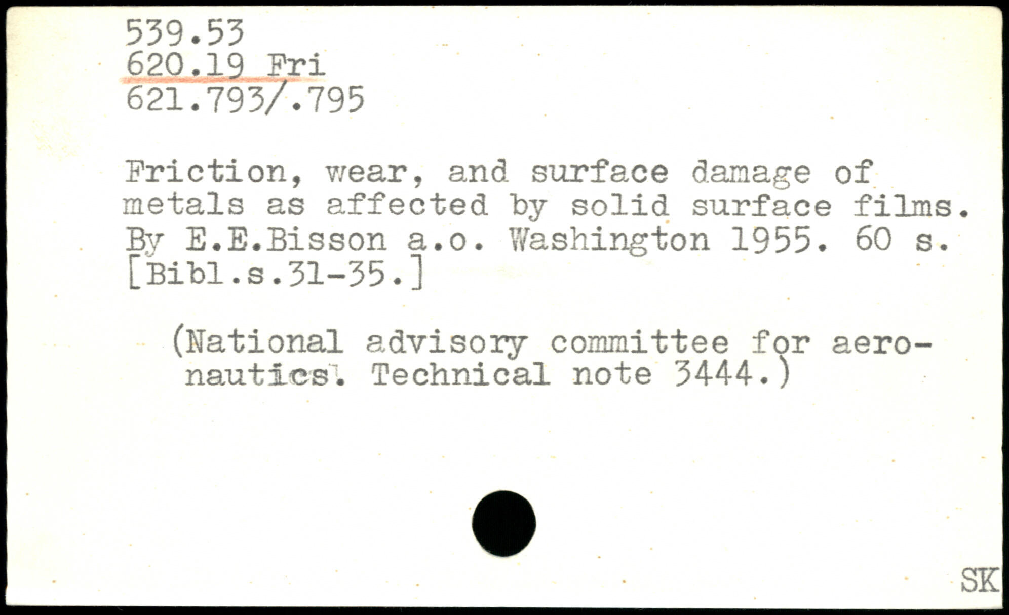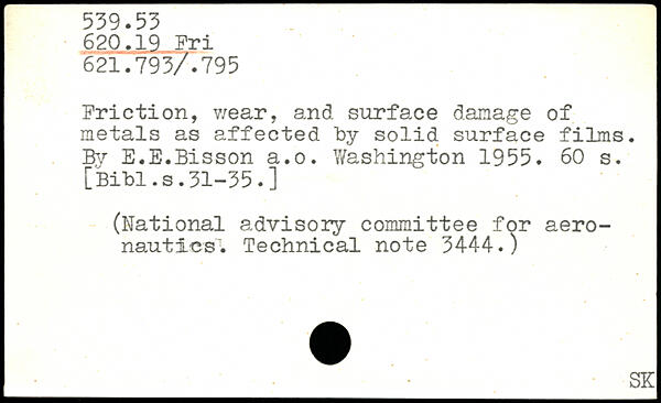 Friction, wear, and surface damage of metals as affected by solid surface films. Bv E.E.Bisson a.o.