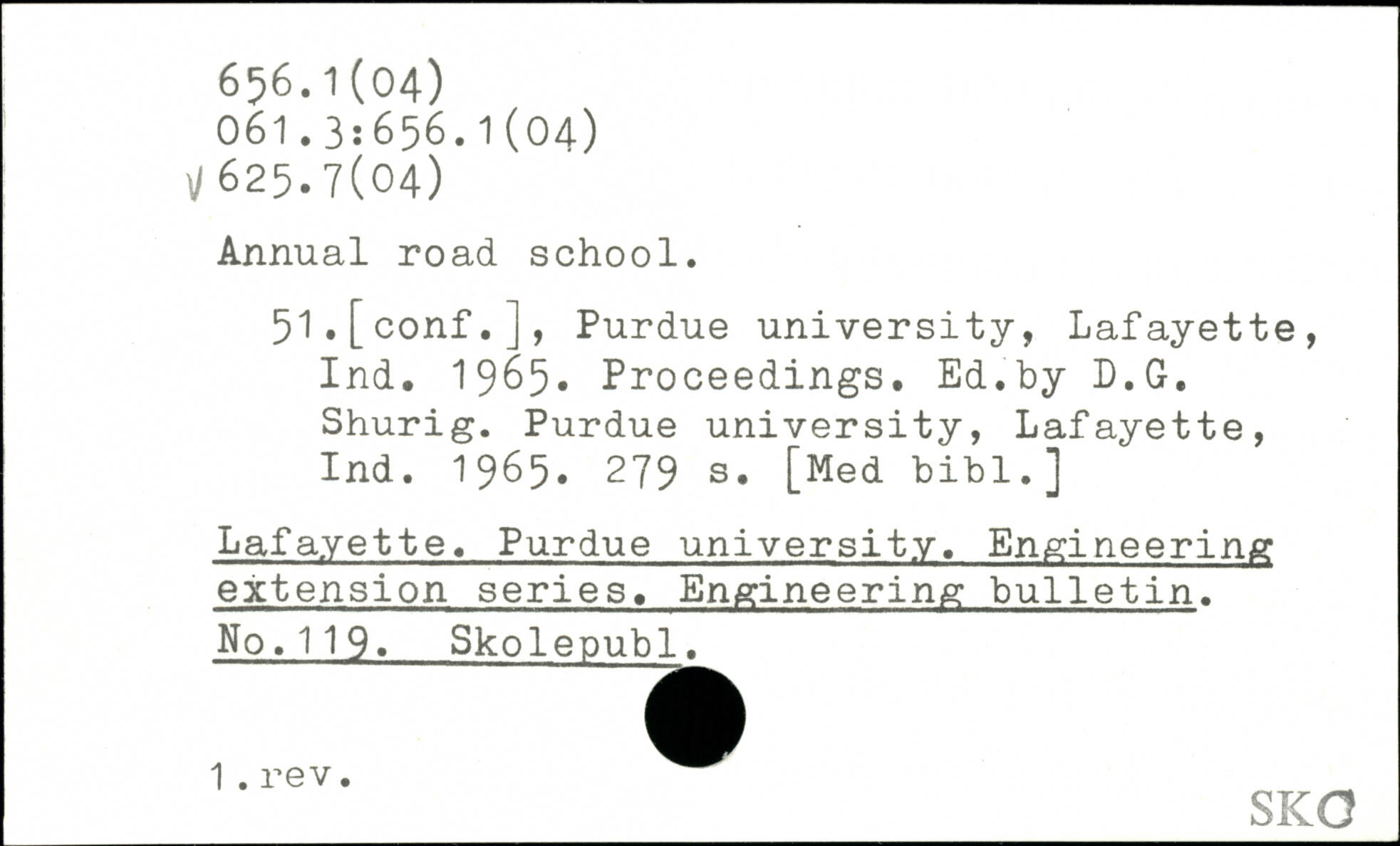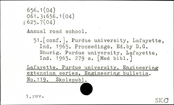 Annual road school. 51.[conf.], Purdue university, Lafayette, Ind. 1965, Proceedings. Ed.by D.G. Shurig. Purdue university, Lafayette, Ind. 1965