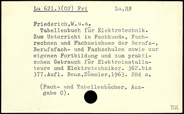 PriederichjW.u.a. Tabellenbuch für Elektrotechnik. Zum Unterricht in Fachkunde, Fachrechnen und Fachzeichnen der Berufs-, Berufsfach- und Fachschulen sowie zur eigenen Fortbildung und zum prakti- sehen Gebrauch für Elektroinstallateure und Elektrotechniker. 3^2.bis