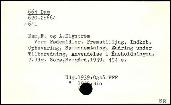 Vore Fødemidler. Fremst1111ng, Indkøb, Opbevaring, Sammensætning, Ændring under Tilberedning, Anvendelse i Husholdningen. 2.Udg.