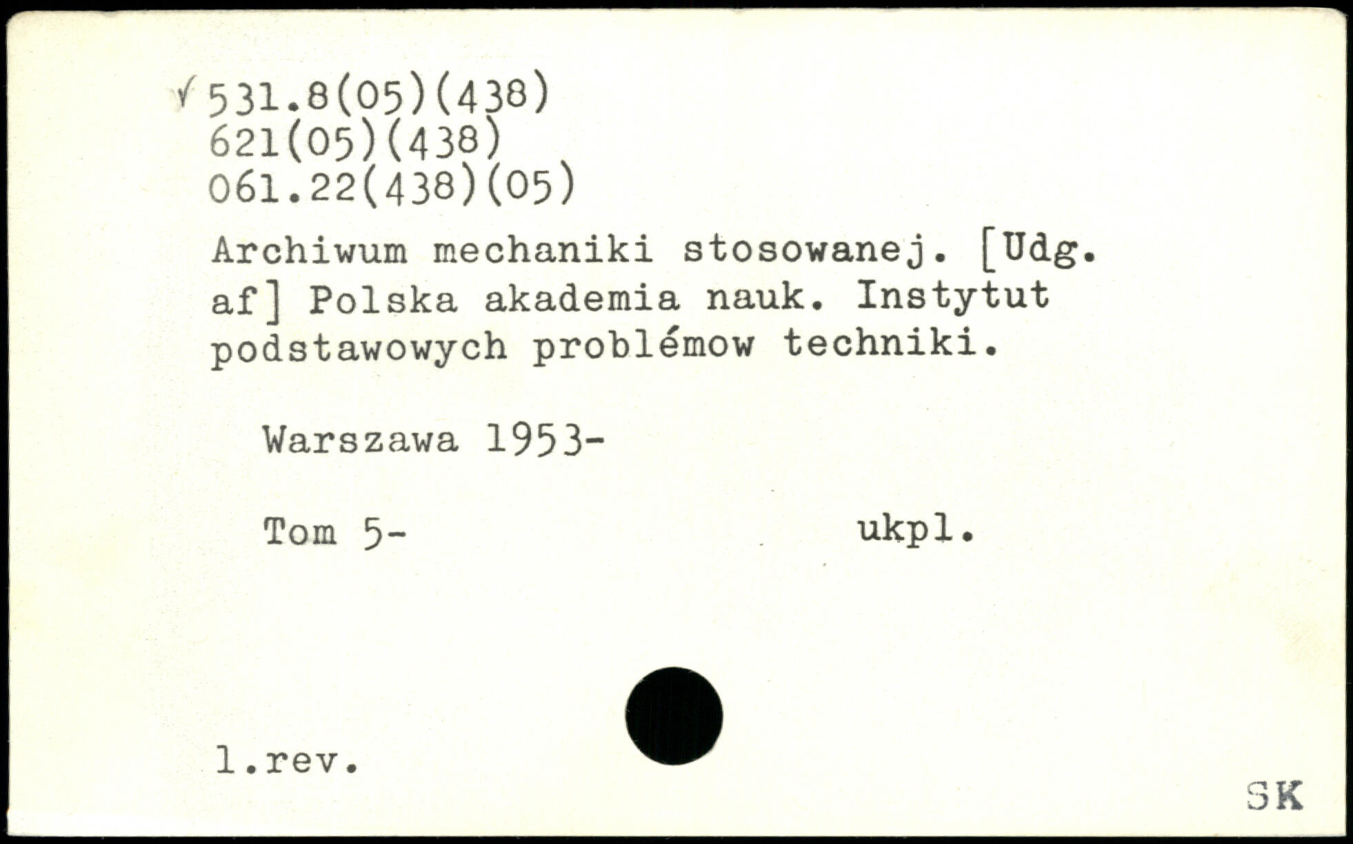 Archiwum mechaniki stosowanej. [Udg. af] Polska akademia nauk. Instytut podstawowych problémow techniki.