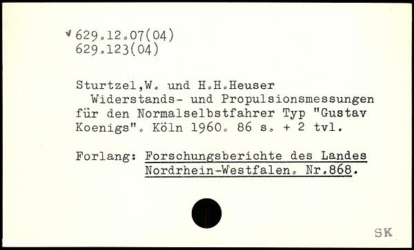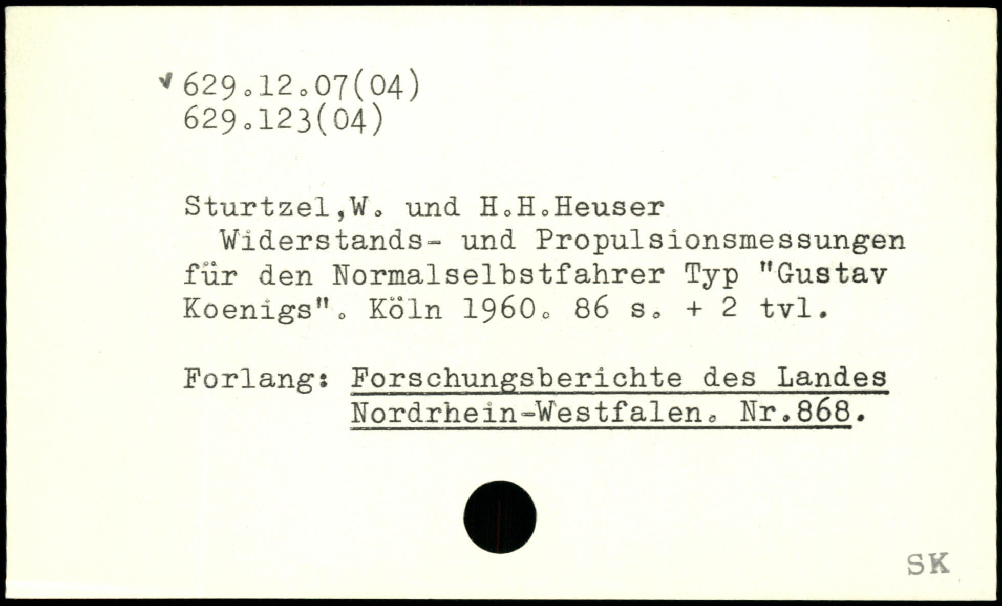 Widerstands- und Propulsionsmessungen für den Normalselbstfahrer Typ "Gustav Koenigsn.