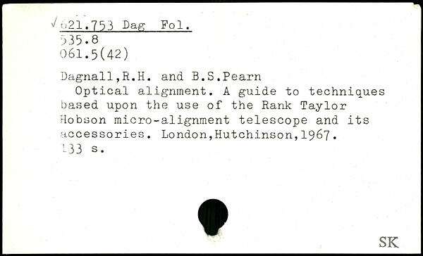 Optical alignment. A guide to techniques based upon the use of the Rank Taylor Robson micro-alignment telescope and its accessories.