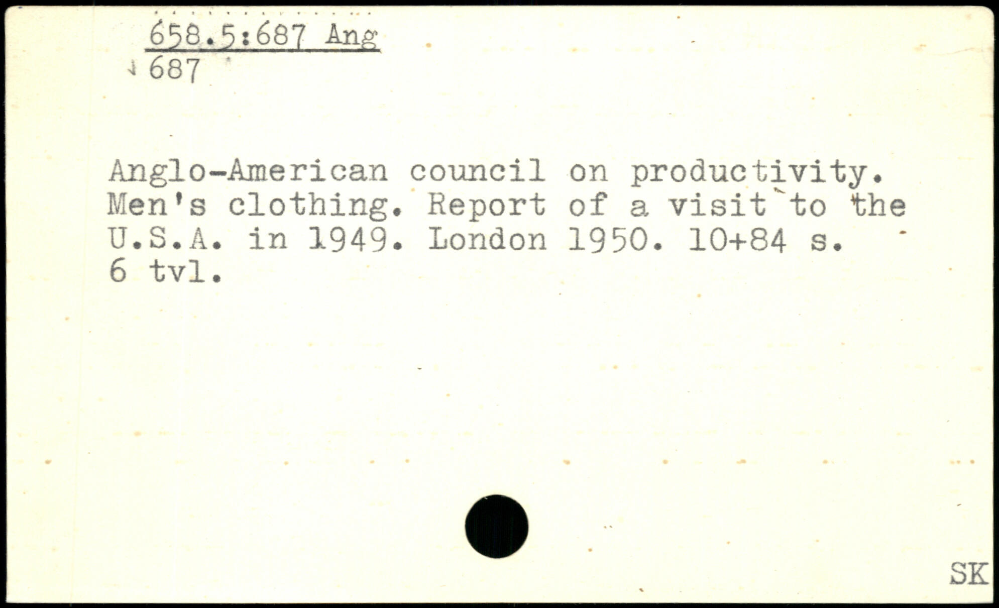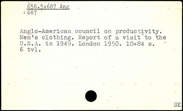 Anglo-American council on productivity. Men's clothing. Report of a visit"to the U.S.A. in 1949.