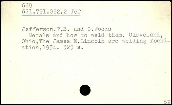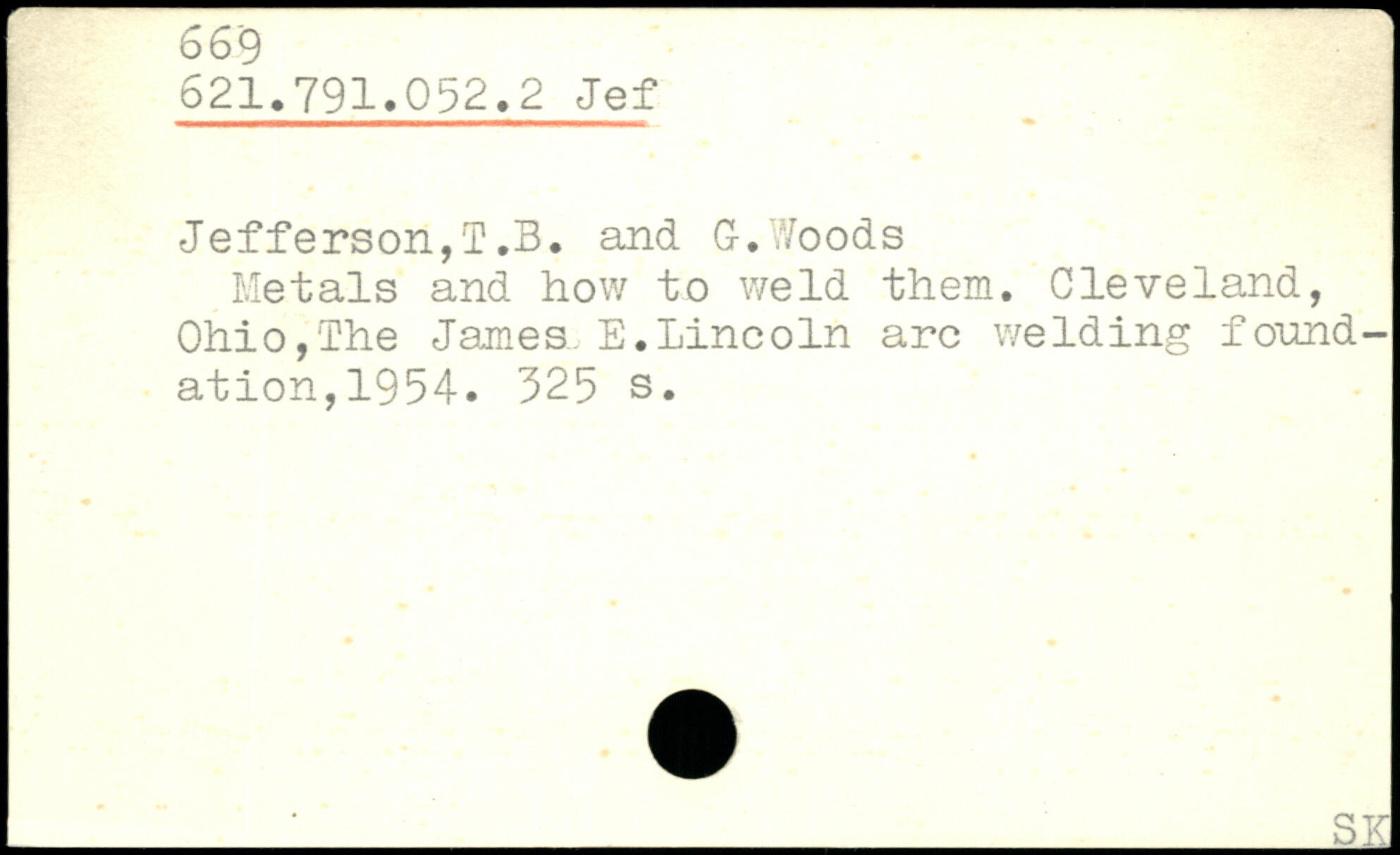 Jefferson,T.B. and G-. Woods Metals and how to weld them. Cleveland, 0hio,ihe James. E.Lincoln arc welding foundation, 1954.