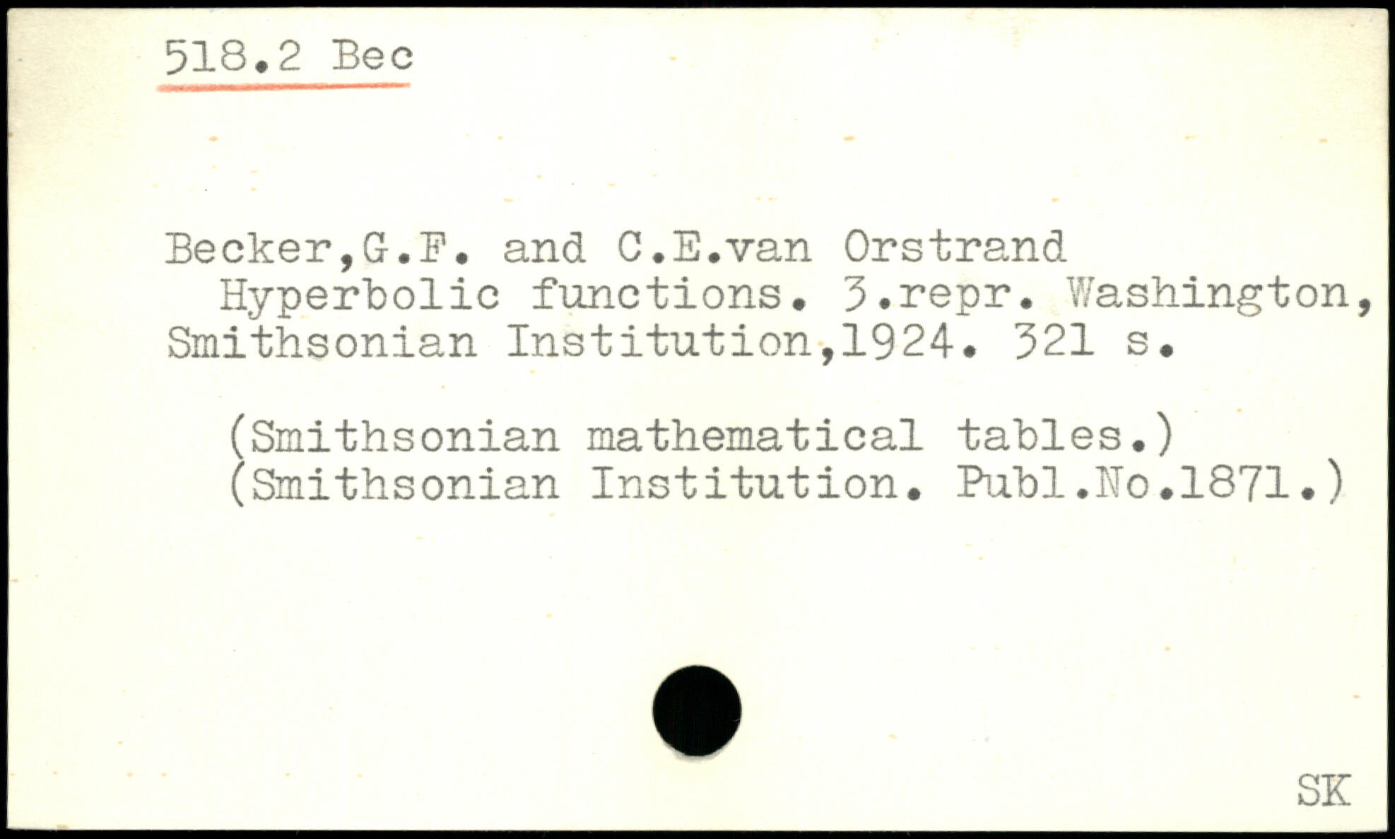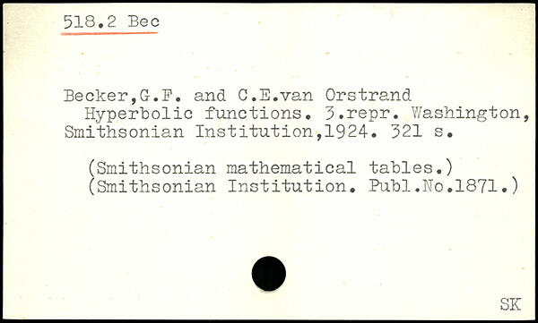 Becker,G.F. and C.E.van Orstrand Hyperbolic functions. 3.repr.