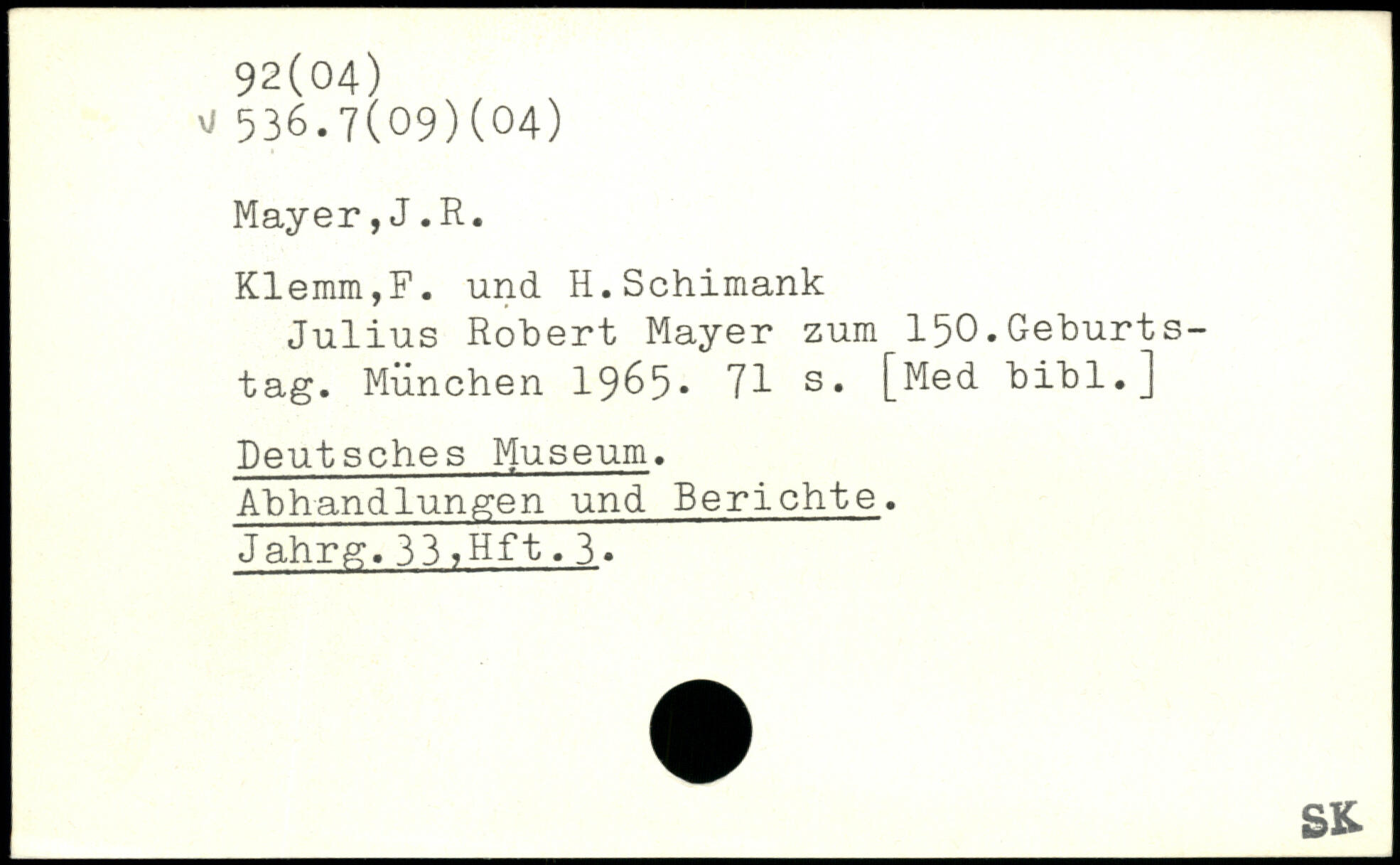 Klemm,F. und H.Schimank Julius Robert Mayer zum 150.Geburtstag.