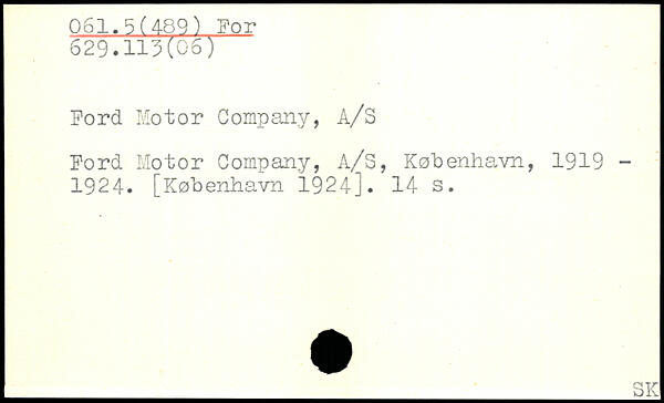Ford Motor Company, A/S Ford Motor Company, A/S, København, 1919 -1924. [København 1924j. 14 s.