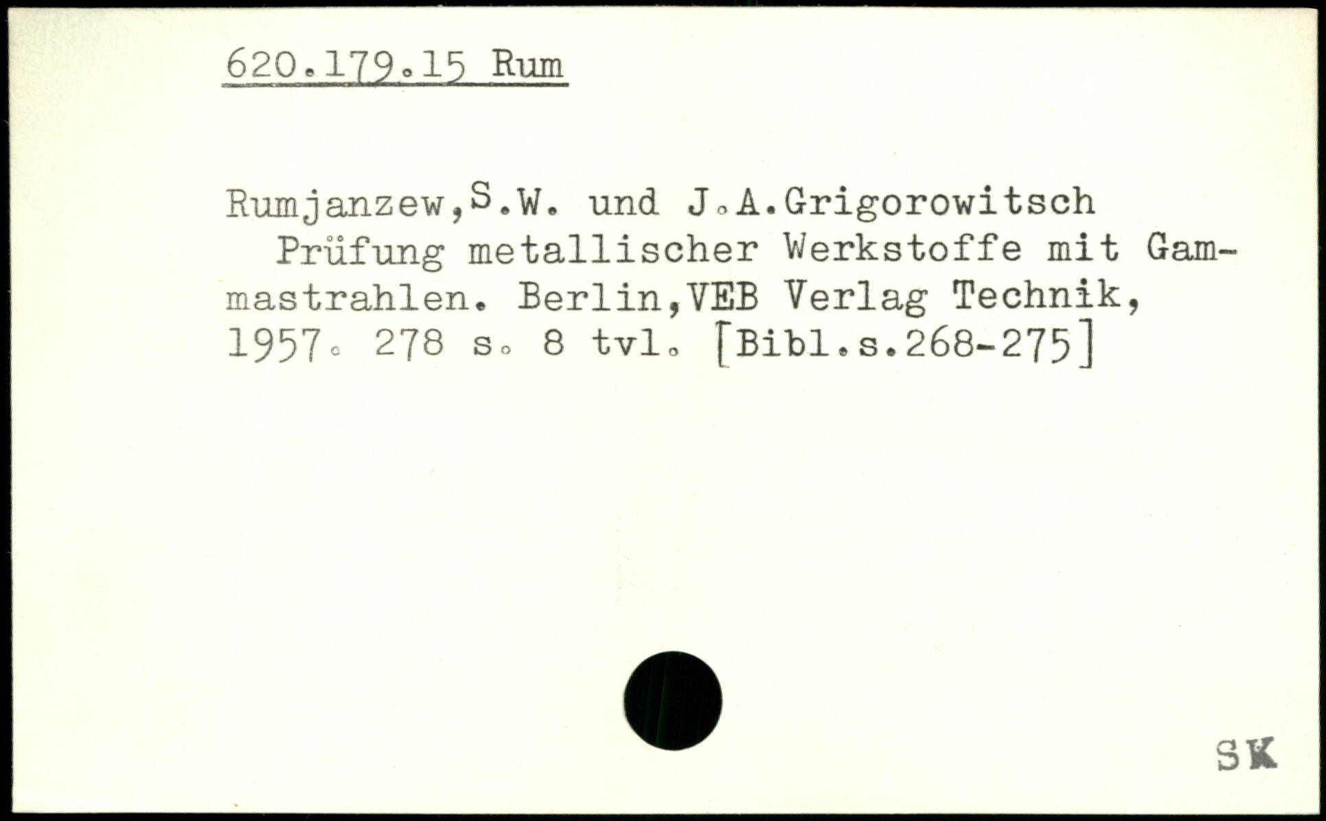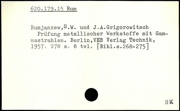 Rumjanzew,S.w. und J,A.Grigorowitsch Prüfung metallischer Werkstoffe mit Gammastrahlen.