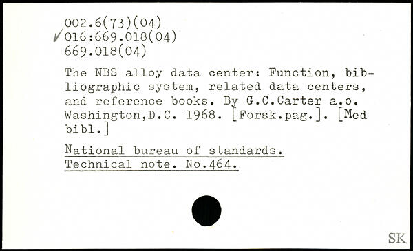 The NBS alloy data center: Function, bib-liographic System, related data centers, and reference books. By G.C.Carter a.o. Washington,D.C. 1968.