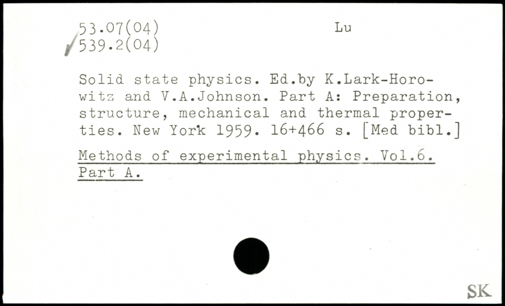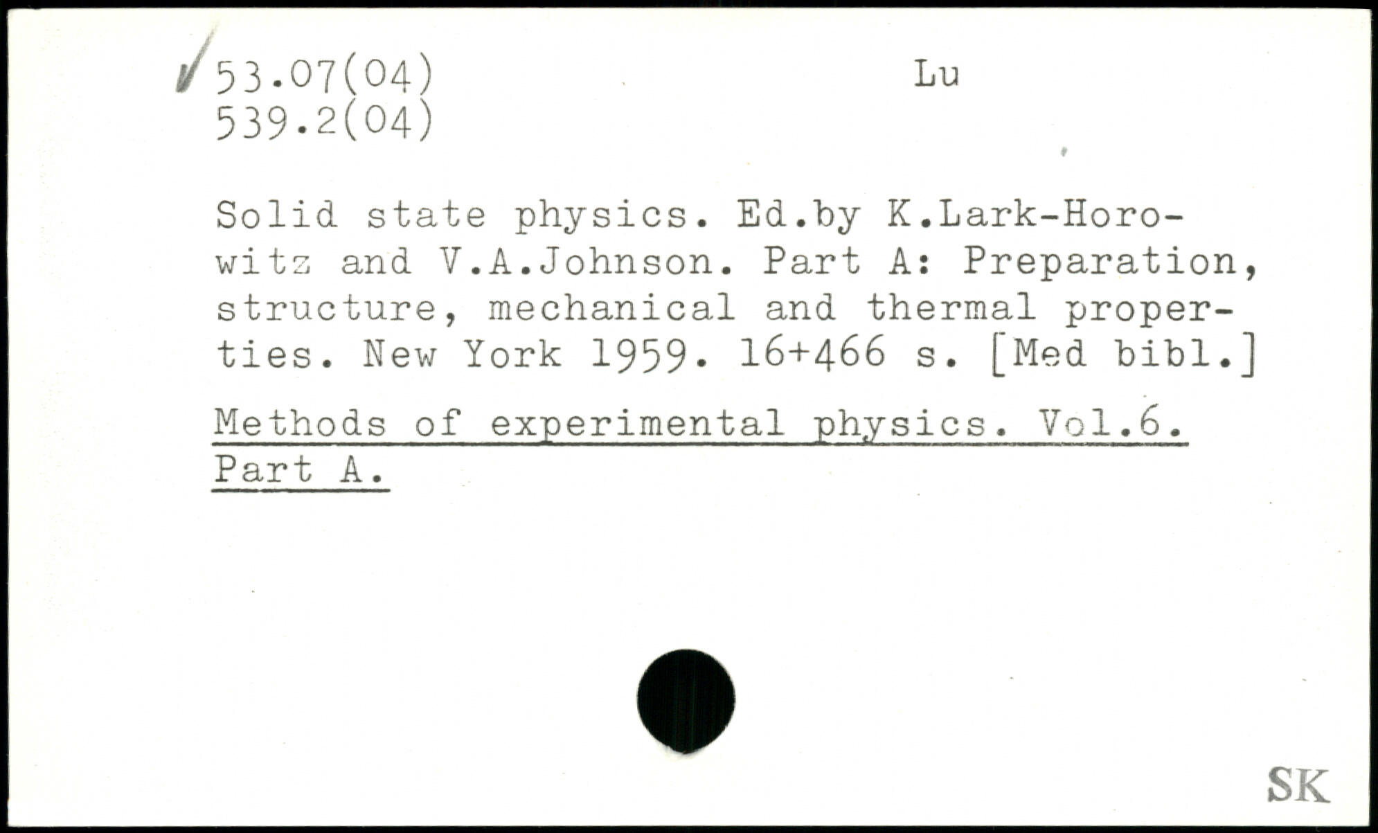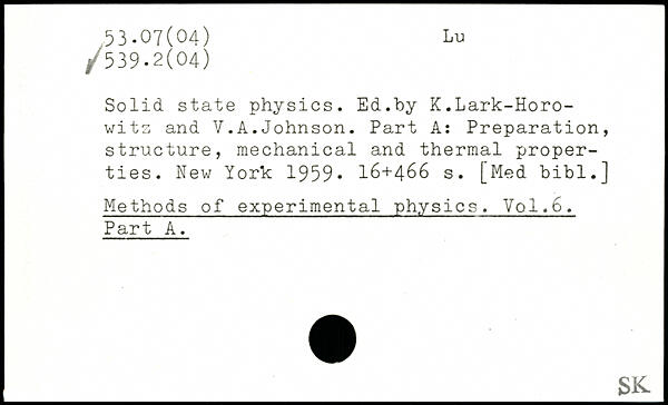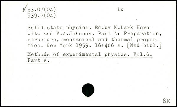 Solid, state physics. Ed.by K.Lark-Horo-witz and V.A.Johnson. Part A: Preparation, structure, mechanical and thermal properties.