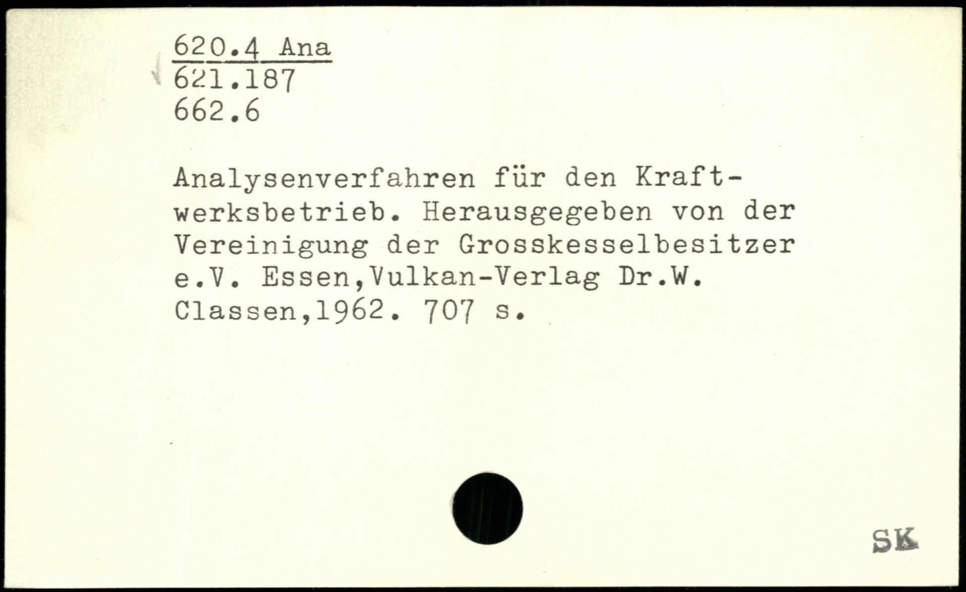 Analysenverfahren für den Kraftwerksbetrieb. Herausgegeben von der Vereinigung der Grosskesselbesitzer e.V. Essen,Vulkan-Verlag Dr.W. Classen, 1962. 'JO'J s.