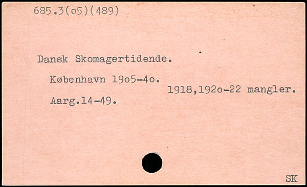 Dansk Skomagertidende. København 19o5-4o. 1918,1920-22 mangler. Aarg.14-49.