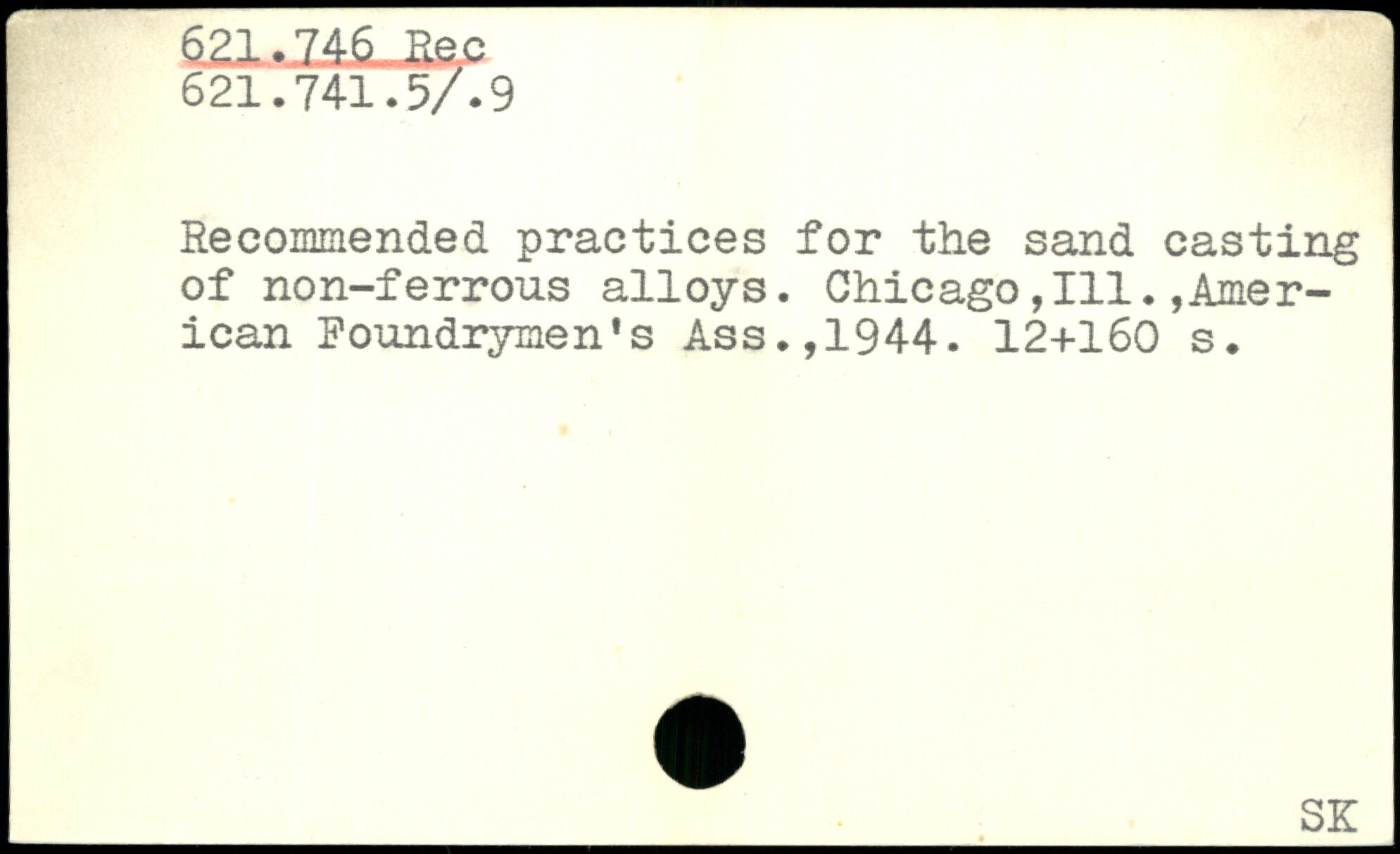 Recommended practices for the sand casting of non-ferrous alloys. Chicago,111.,American Poundrymen's Ass.,1944.