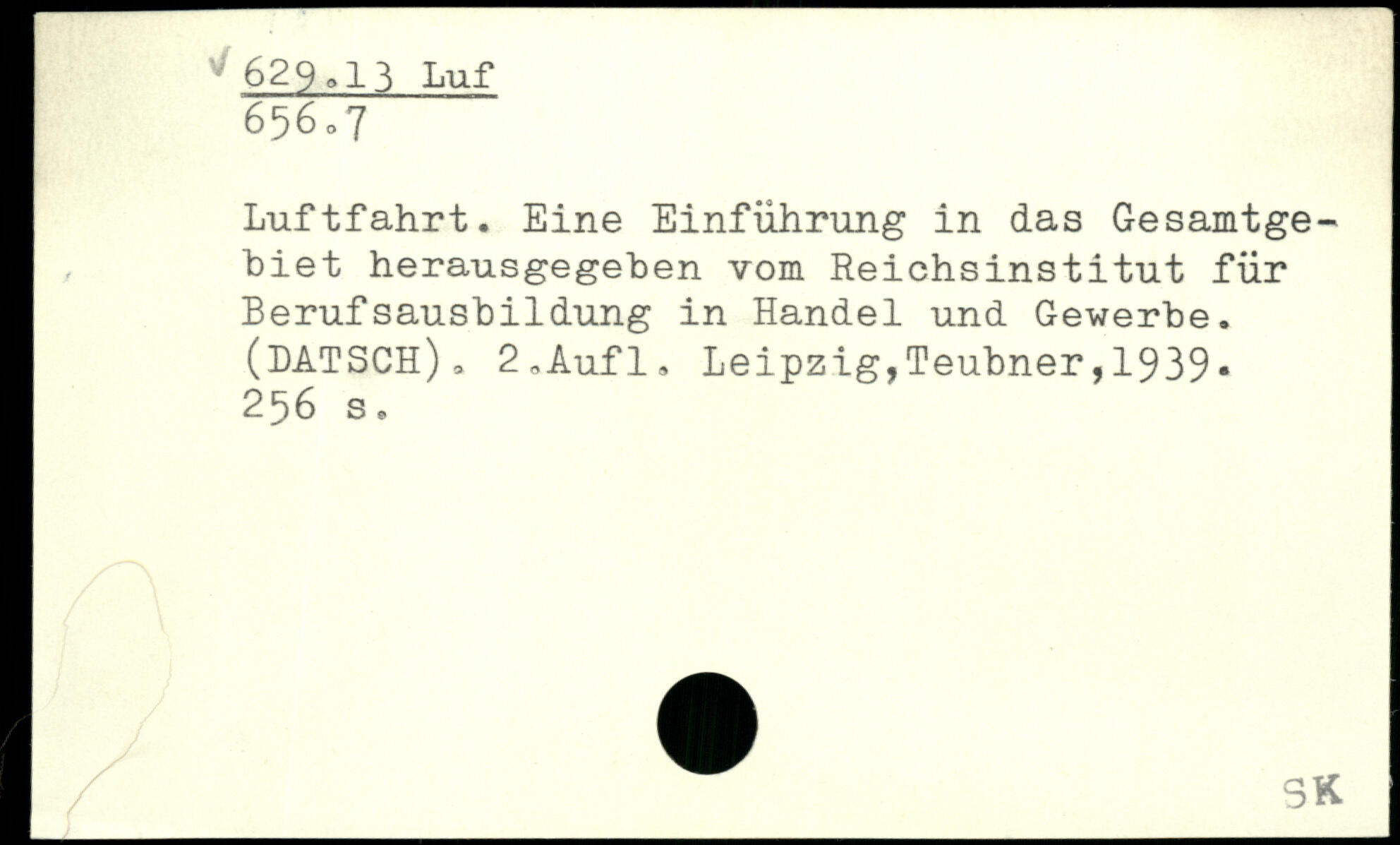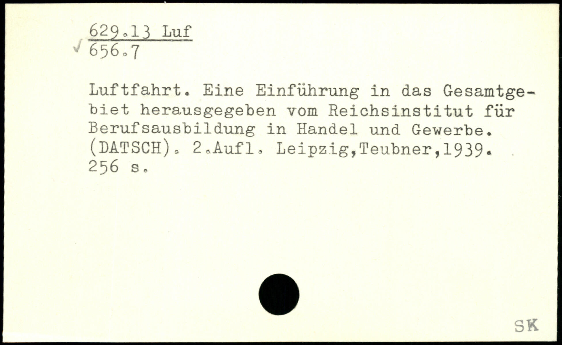 Luftfahrt. Eine Einführung in das Gesamtge-hiet herausgegeben vom Reichsinstitut für Berufsausbildung in Handel und Gewerbe. (DATSCH), 2<,Aufl.