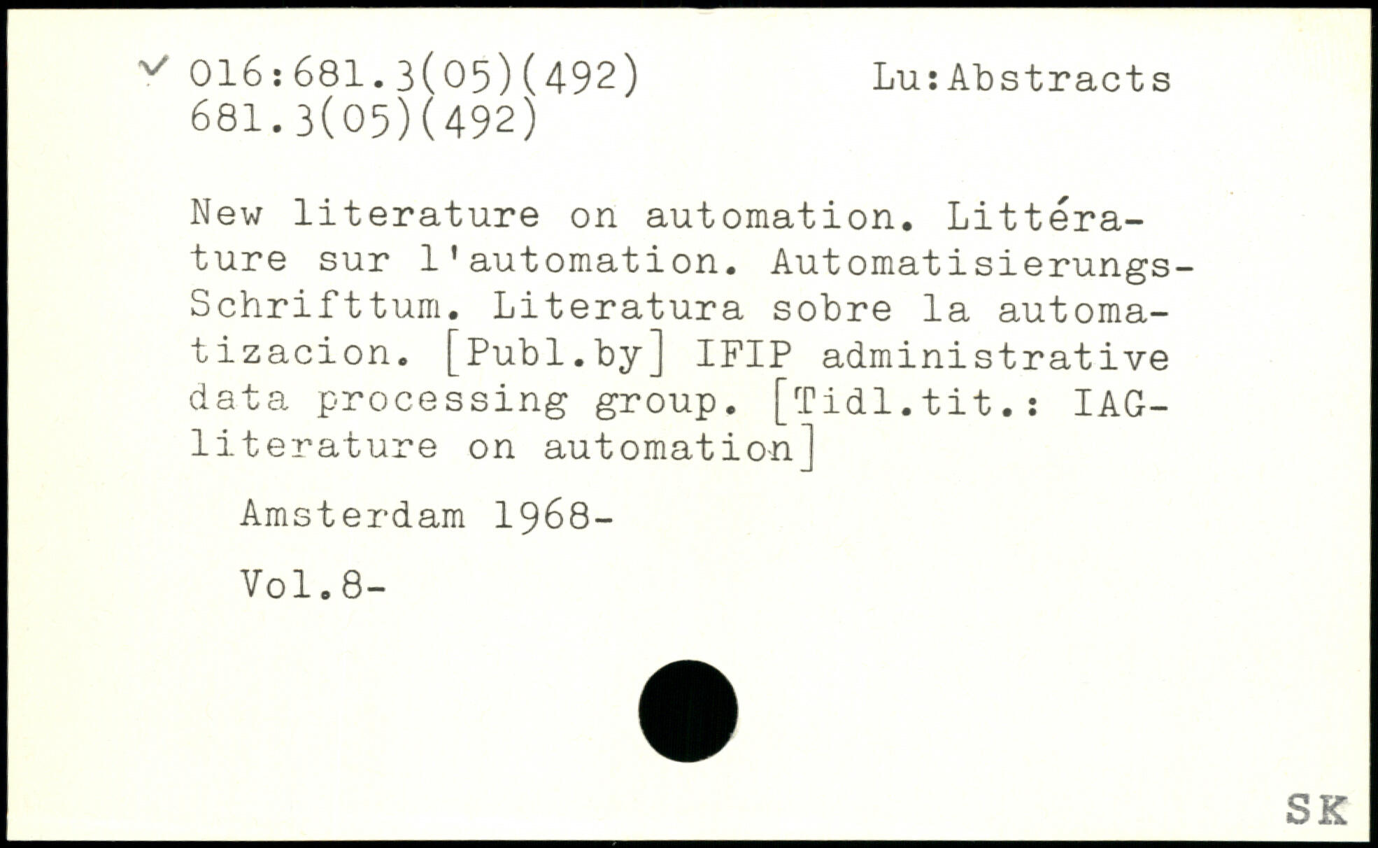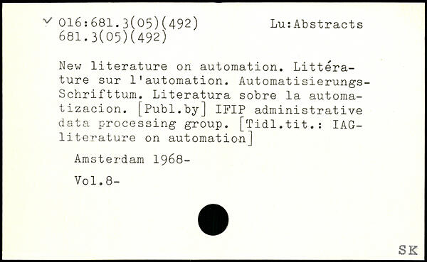 New literature on automation. Littérature sur l'automation. Automatisierungs-Schrifttum. Literatura sobre la automa-tizacion.