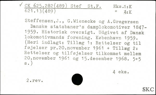 Steffensen,J., G.Wienecke og A.Gregersen Danske statsbaner's damplokomotiver 1847-1959. Historisk oversigt. Udgivet af Dansk lokomotivmands forening.