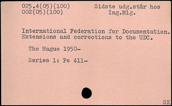 International Fédération for Documentation. Extensions and corrections to the UDC.