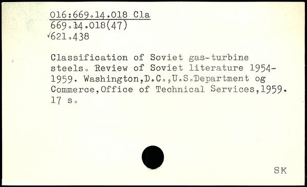 Classification of Soviet gas-turbine steelso Review of Soviet literature 1954“ 1959. Washington,!).